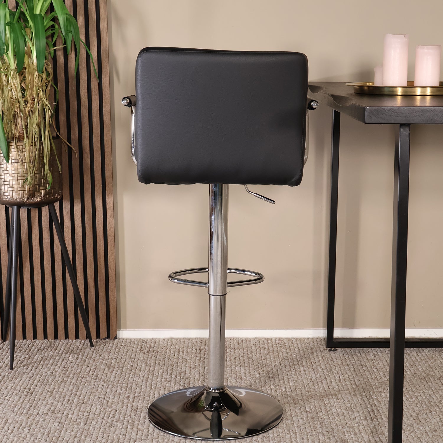 - Luxe zitting van PU-kunstleder en stevig onderstel van verchroomd staal