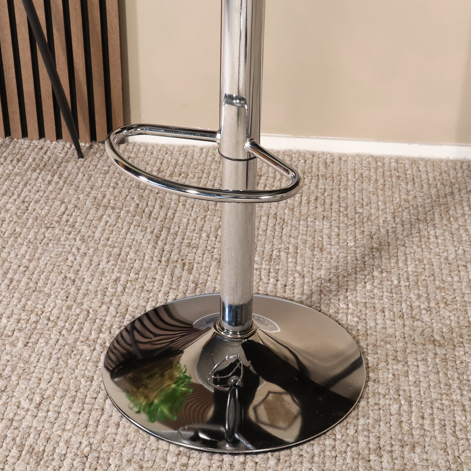Ontdek het ultieme zitcomfort met deze moderne barkruk. De kunstlederen bekleding straalt luxe uit, terwijl het glanzende verchroomde onderstel voor een verfijnde, moderne touch zorgt. Perfect om lang en ontspannen te tafelen of gezellig aan de bar te borrelen.