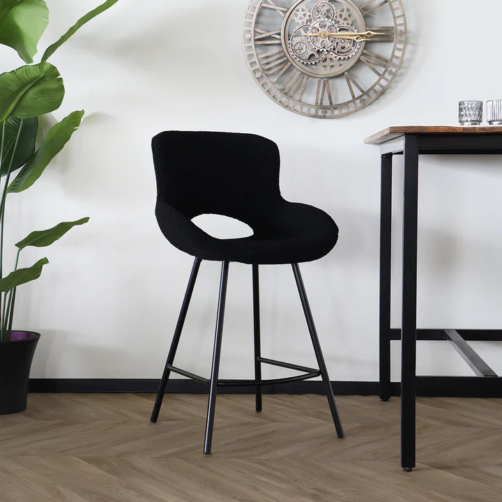 De barstoel Maike heeft een gestoffeerde teddy zitting en de industriële zwarte poten. Teddy stof is helemaal hip en super zacht! Je kunt de stof makkelijk schoon houden en schoonmaken met een licht vochtige doek, ook kun je ervoor kiezen om je barkruk te impregneren met een textiel protector spray.