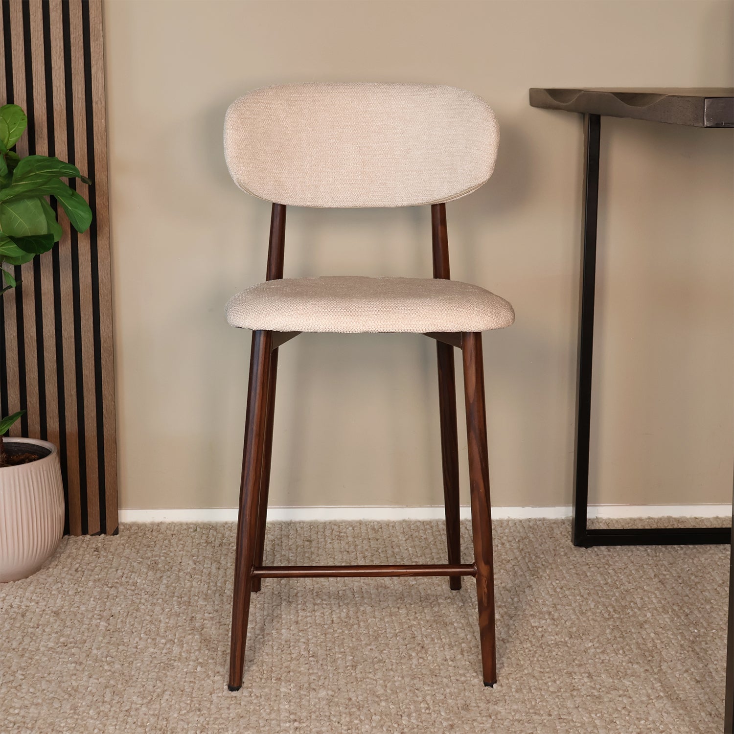 Barkruk Japandi beige Reika walnoot