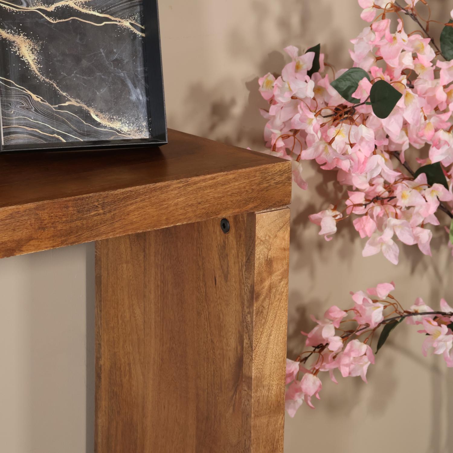 Voeg een vleugje elegantie toe aan je interieur met deze strakke bijzettafel. Het slanke ontwerp en het natuurlijke hout maken dit meubel veelzijdig en stijlvol. Ideaal voor in de hal, slaapkamer, woonkamer of als subtiel wandmeubel dat sfeer en functionaliteit combineert.