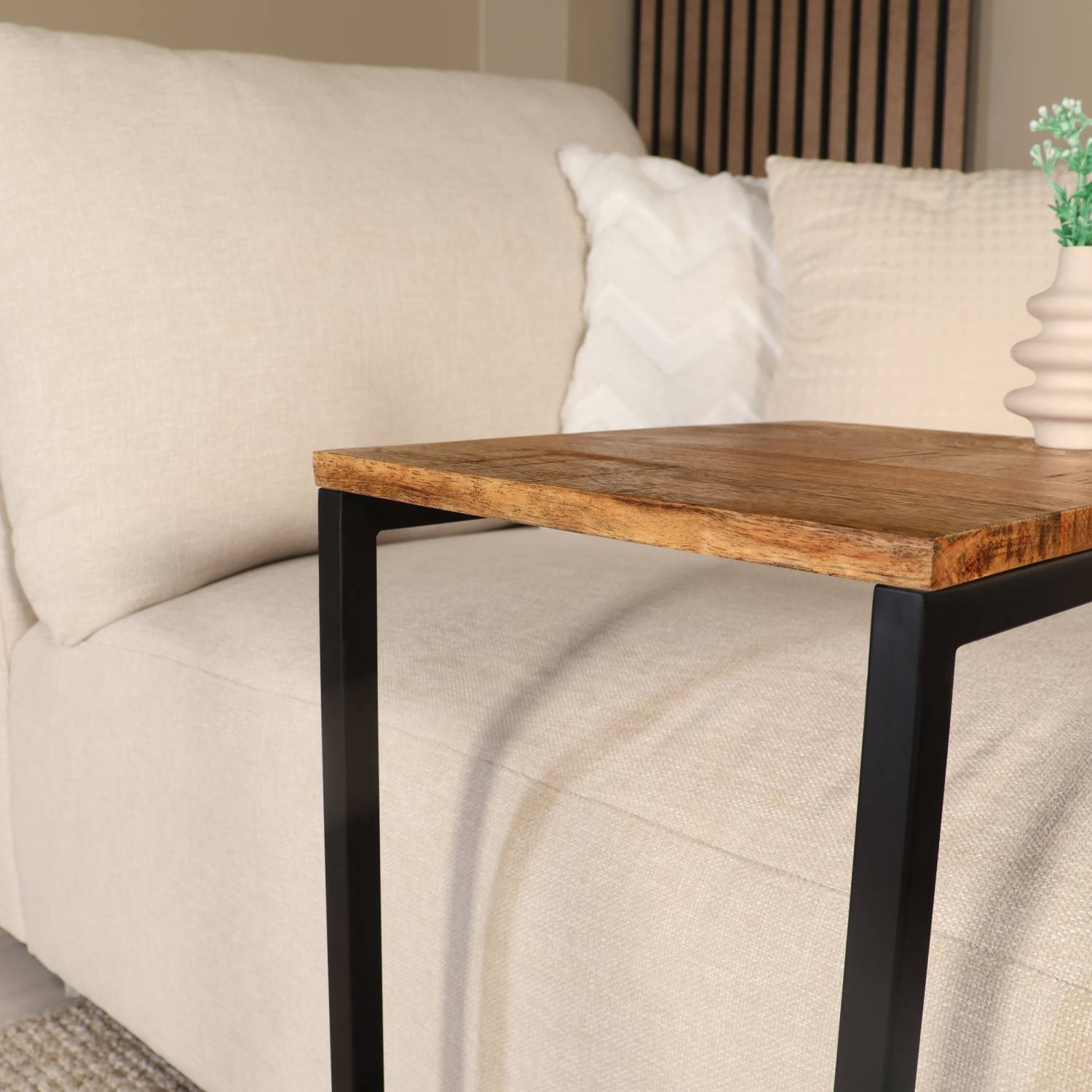 Deze laptoptafel Jerry heeft een mangohouten blad en een zwart metalen onderstel. De bijzettafel kun je in zowel de woonkamer als in de slaapkamer neerzetten om gemakkelijk jouw spullen op te bergen en binnen handbereik te houden. Bij mangohout weet je zeker dat het hout een duurzame oorsprong heeft en dat het duurzaam is! Mangobomen worden namelijk niet speciaal gekweekt voor het hout, maar juist voor de mango's die eraan groeien. Als een mangoboom te oud is voor de mangoteelt, dan pas wordt hij gekapt om plaats te maken voor een jongere boom. De gekapte boom wordt dan gebruikt om meubelen van te maken.