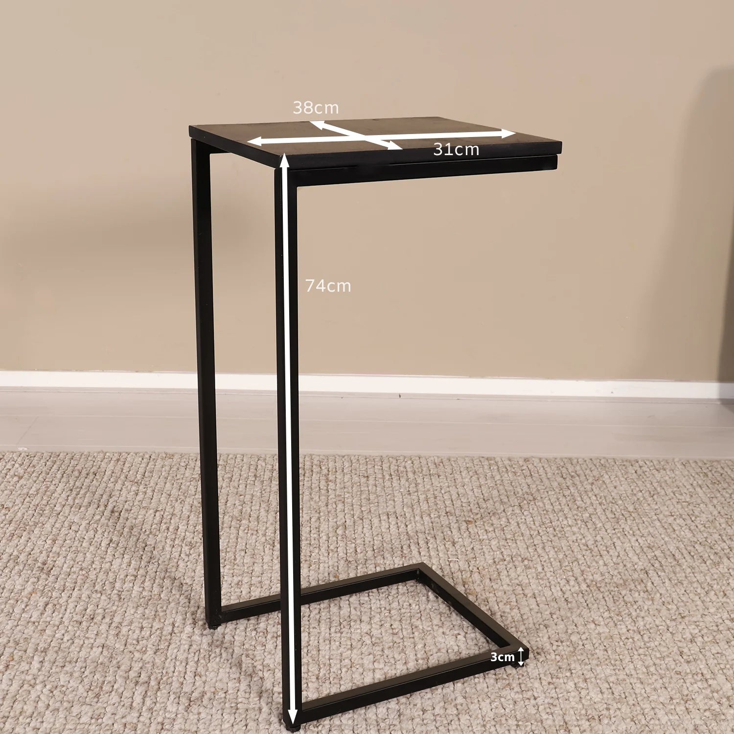 - Bijzettafel van B 31 × D 38 × H ca. 74 cm met een frame van 2 cm dik