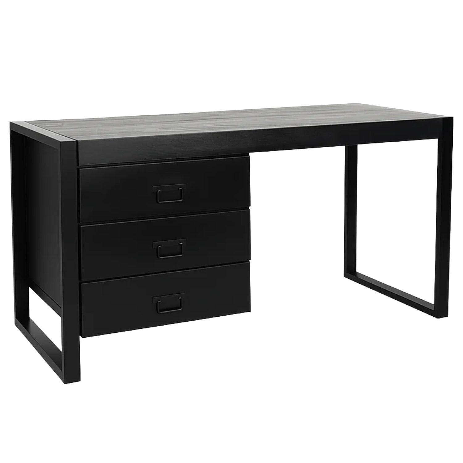 Werk in stijl met dit industriële bureau dat design en functionaliteit perfect combineert. Het robuuste houten blad en het metalen frame zorgen voor een stoere uitstraling, terwijl de drie lades aan de zijkant handige opbergruimte bieden voor al je werkspullen. Ideaal als bureau voor thuiswerken of studeren.