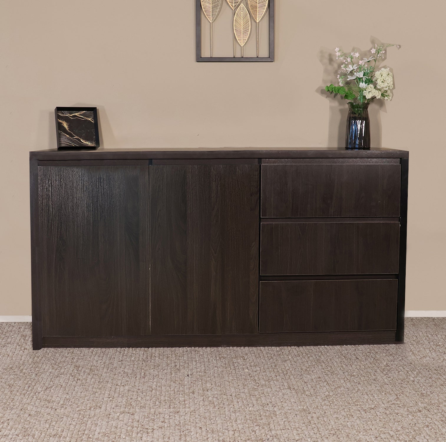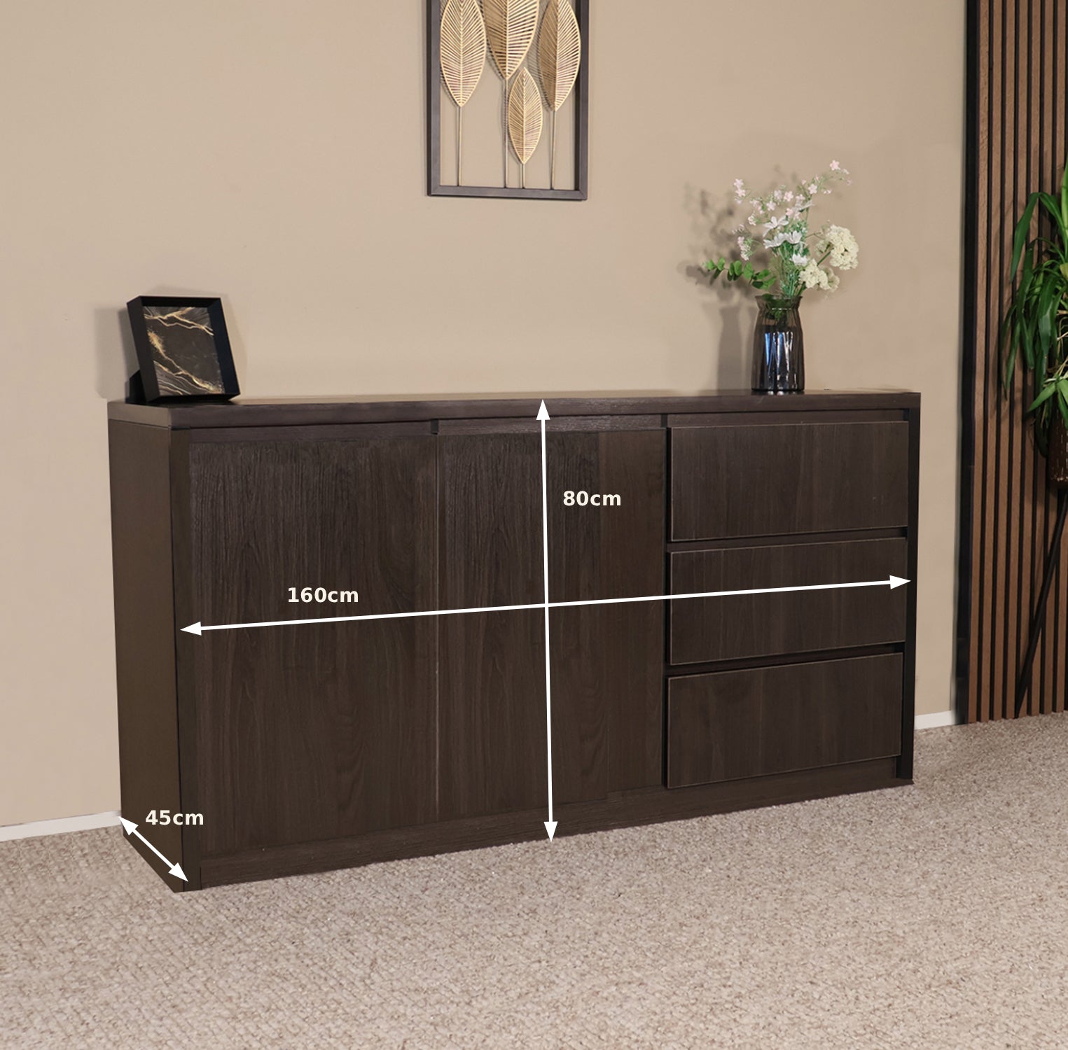 Geef je interieur een moderne en stijlvolle uitstraling met dit functionele dressoir. De houtlook zorgt voor een strak design dat perfect past in een eigentijdse woonstijl. Dankzij de ruime lades en kastdeuren heb je voldoende opbergruimte voor al je dagelijkse spullen.