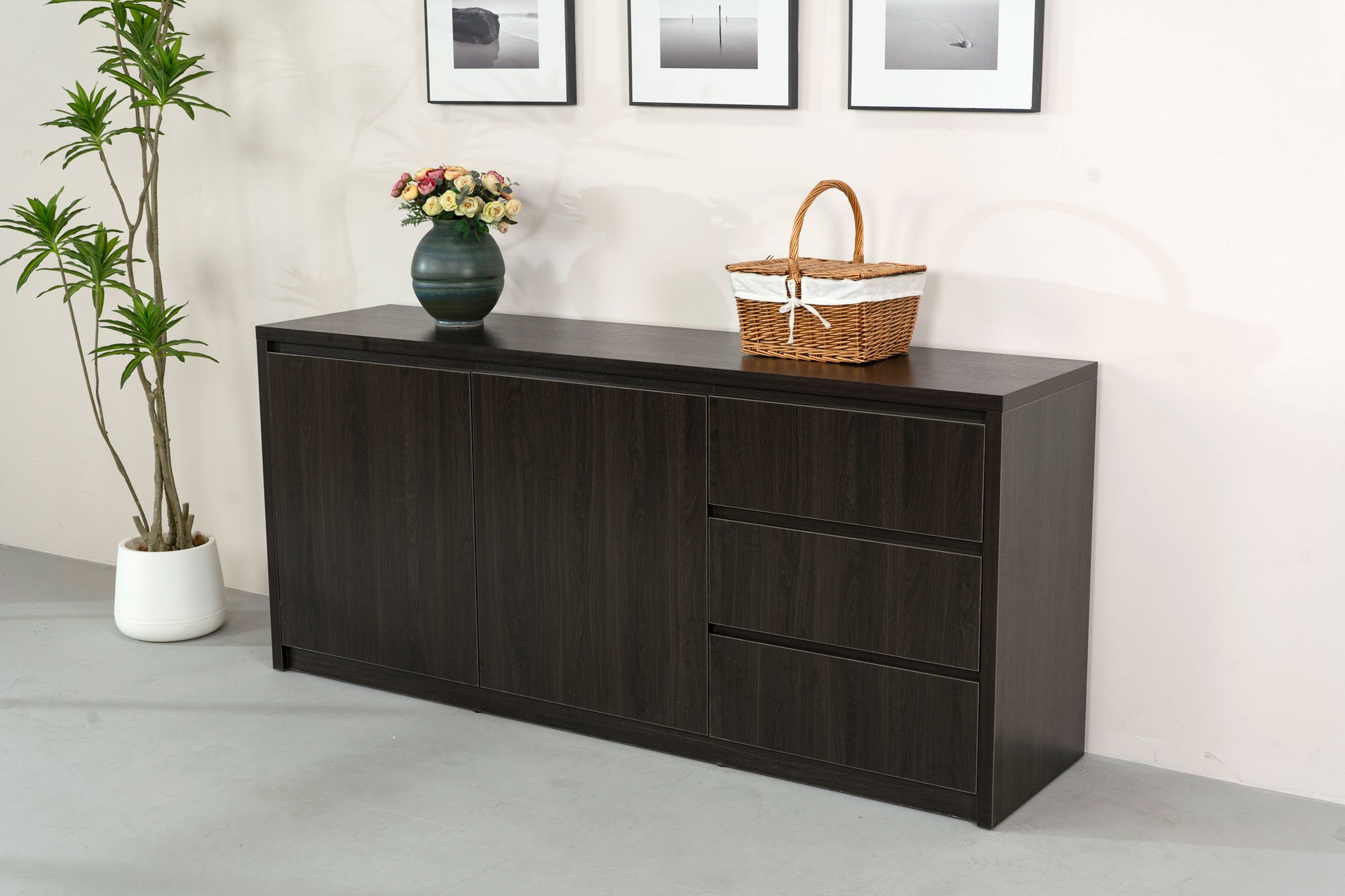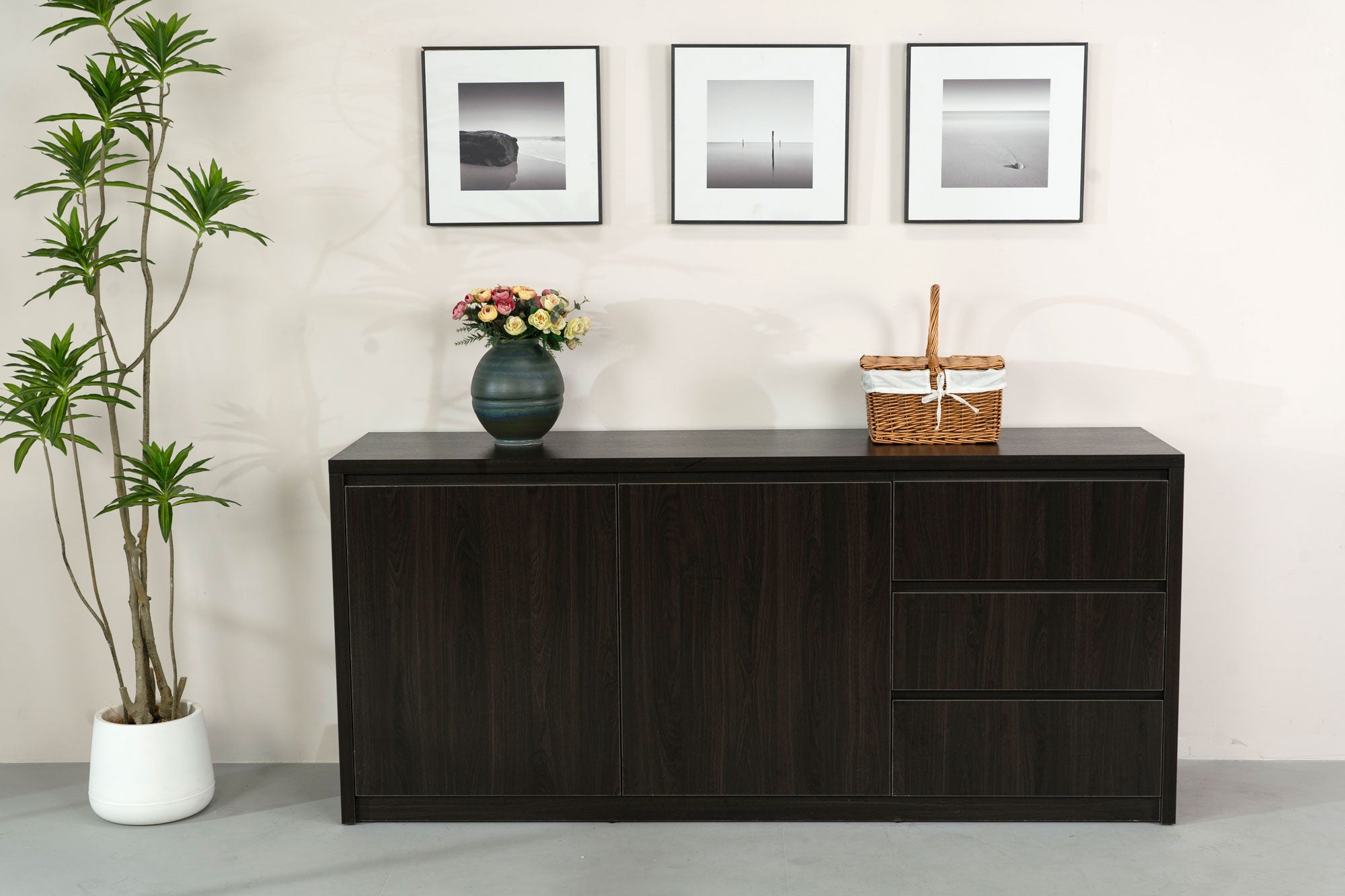 Het melamine dressoir Cassie is voorzien van twee deuren en drie lades waar je diverse spullen in of achter kan opbergen om deze uit het zicht maar toch binnen handbereik te houden! Denk hierbij bijvoorbeeld aan de opladers van je telefoon of laptop, je tablet of fotocamera, de controllers van de gameconsole, al jullie gezelschapsspelletjes en andere spullen! Bovenop dressoir kun jij bijvoorbeeld je tv kwijt voor als je deze graag wat hoger hebt staan, maar je hebt ook genoeg ruimte om lekkere geurstokjes, een mooie foto of decoratieve beelden te zetten!