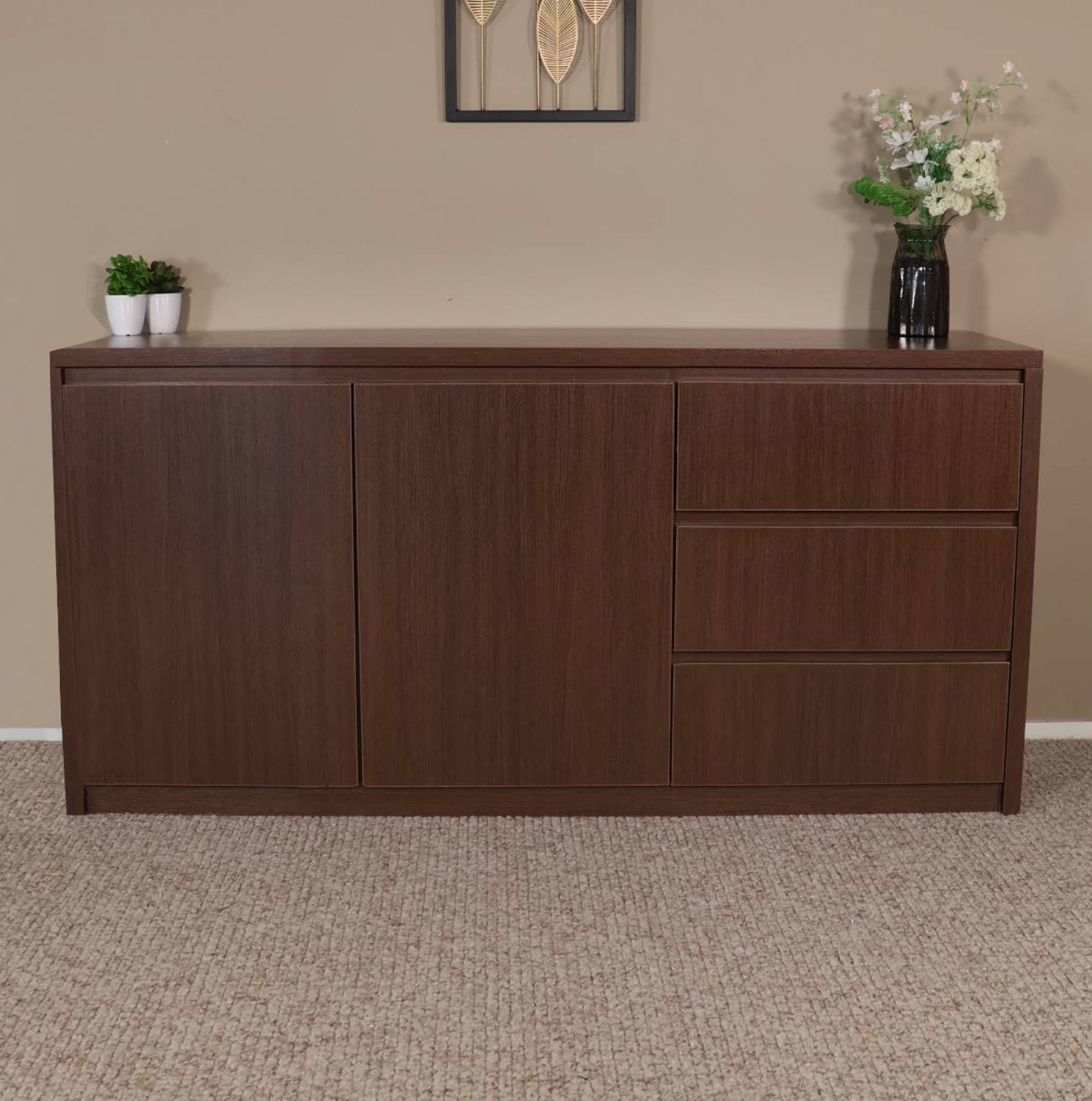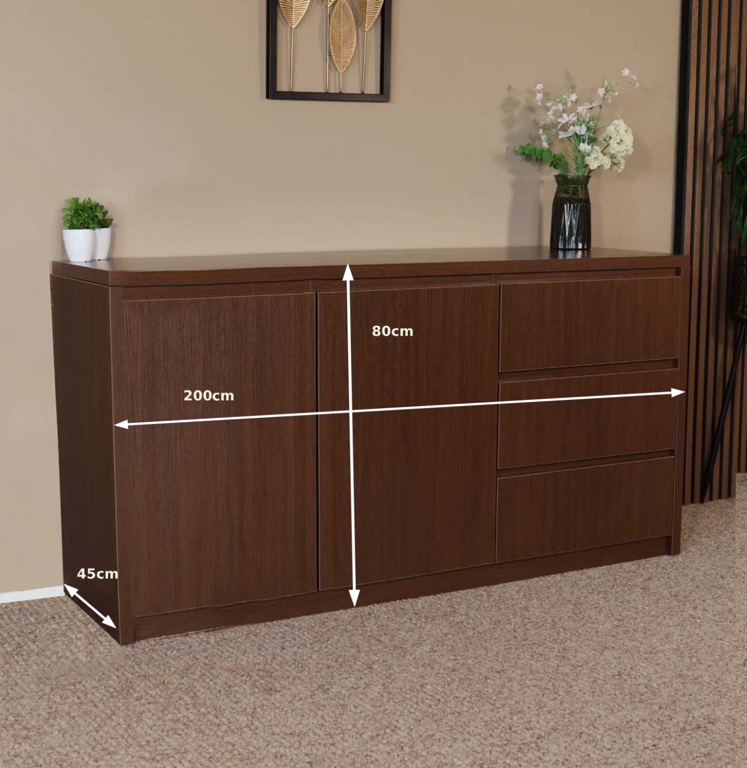Geef je interieur een moderne en stijlvolle uitstraling met dit functionele dressoir. De houtlook zorgt voor een strak design dat perfect past in een eigentijdse woonstijl. Dankzij de ruime lades en kastdeuren heb je voldoende opbergruimte voor al je dagelijkse spullen.