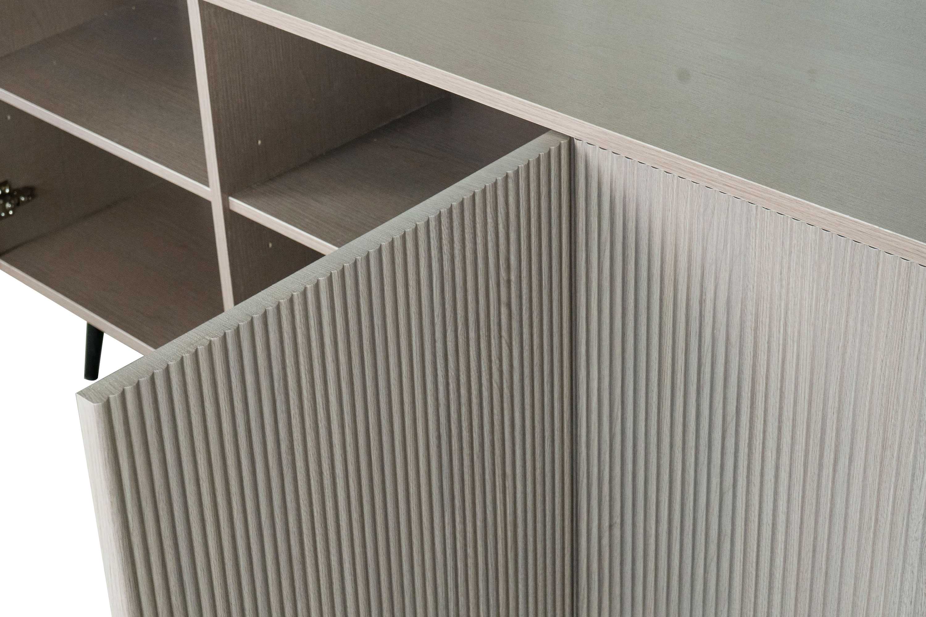 Voeg een moderne stijl aan je interieur toe met dit designer dressoir. De strakke houtlook zorgt voor een tijdloze uitstraling welke perfect past in iedere woonstijl. Dankzij de ruime kastdeuren heb je voldoende opbergruimte voor al je dagelijkse spullen.