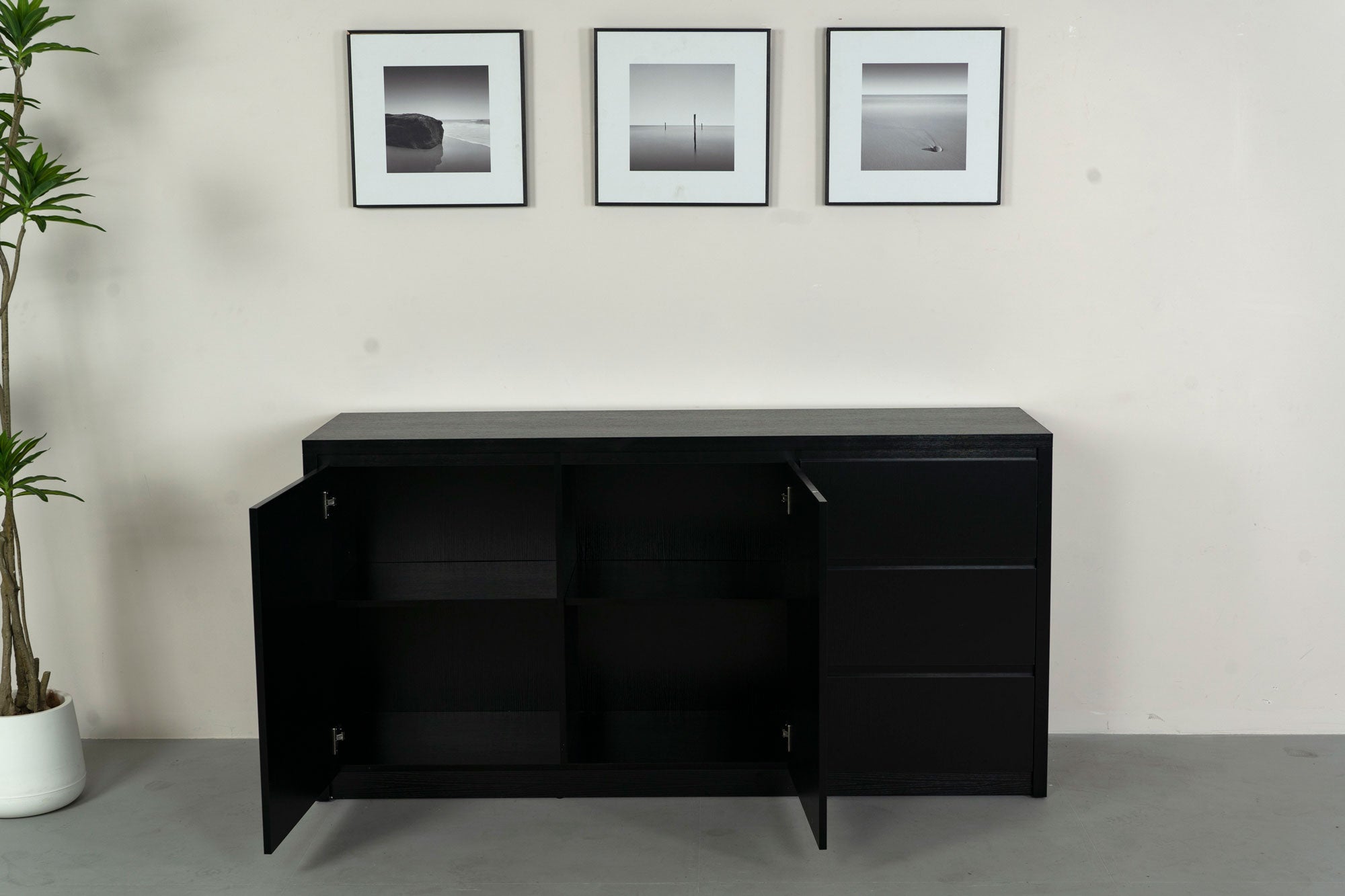 Dressoir melamine zwart 160cm Cassie