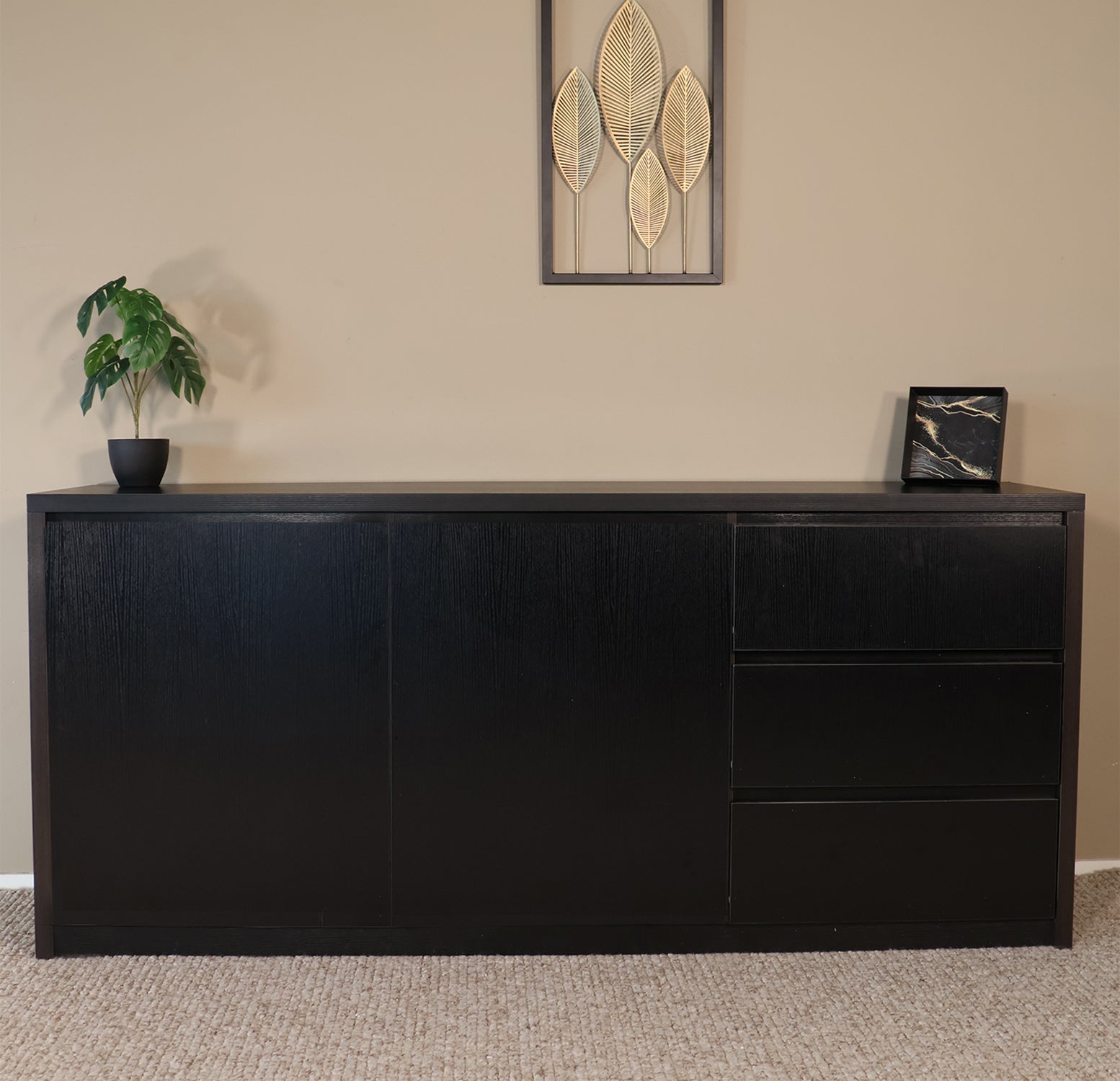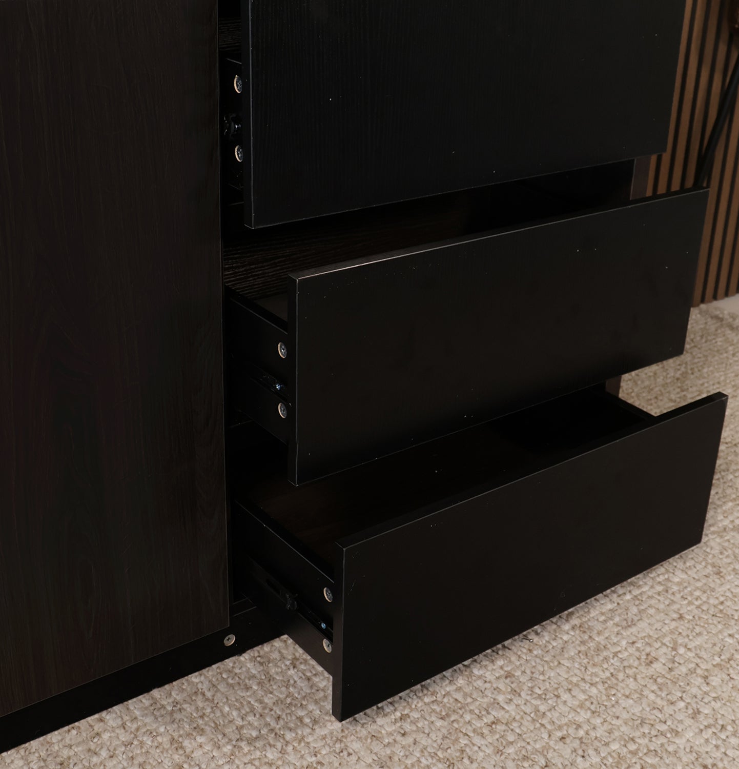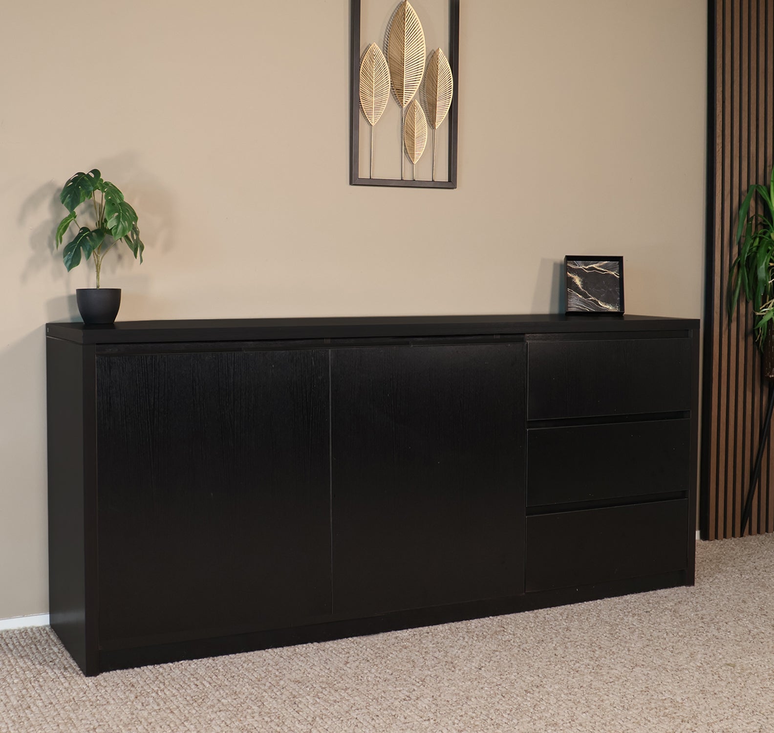 - Voorzien van twee deuren en drie ruime lades voor praktische opbergruimte