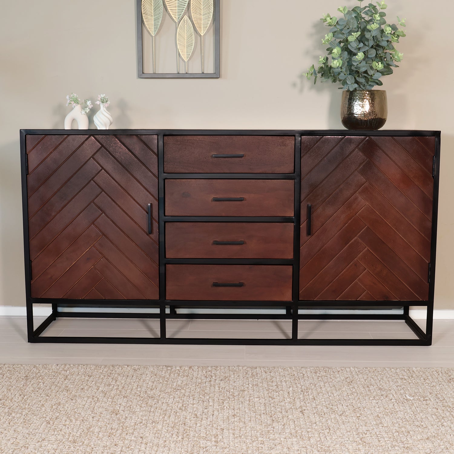 Dressoir visgraat mangohout 160cm walnoot Cody