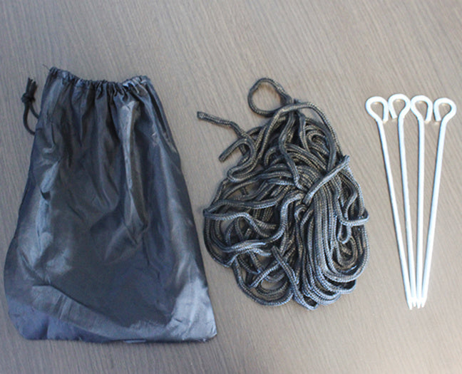 - Wordt met draagtas, haringen en scheerlijnen geleverd
