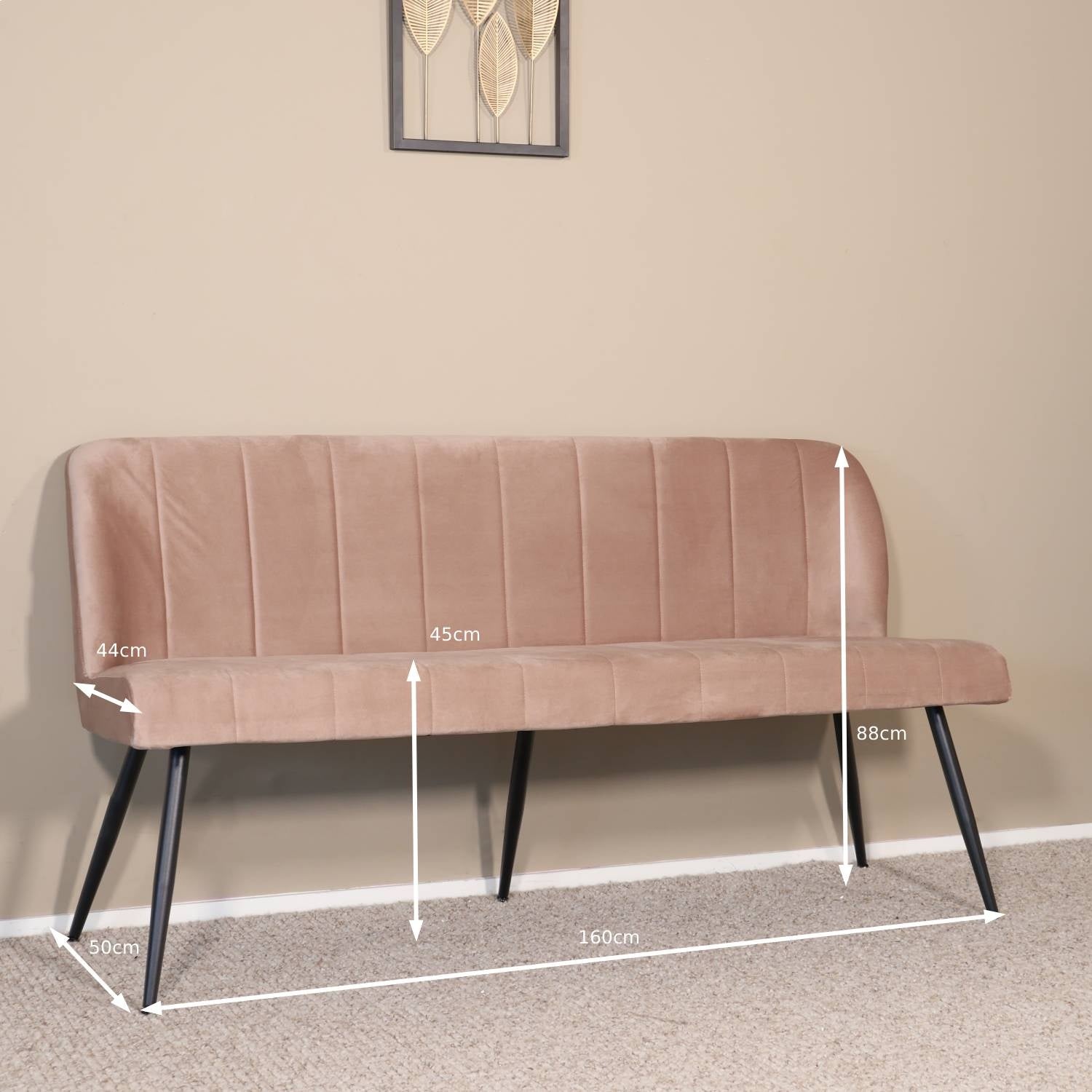 Eetkamerbank Sally 160cm champagne velvet