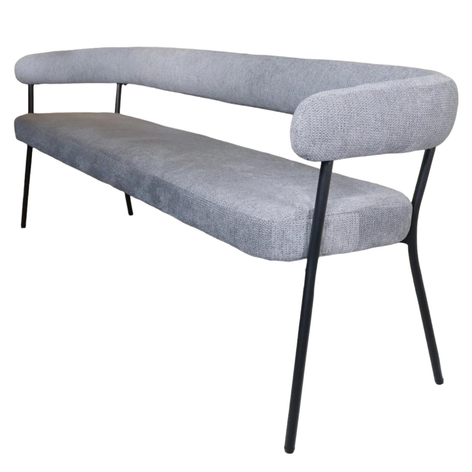 Maak jouw eethoek compleet met deze stijlvolle eetkamerbank. De combinatie van een zachte stoffen bekleding en het zwarte metalen frame zorgt voor een tijdloze, moderne uitstraling. Dankzij de comfortabele rugleuning en armleuningen is deze zitbank perfect voor lange diners of gezellige momenten aan tafel.