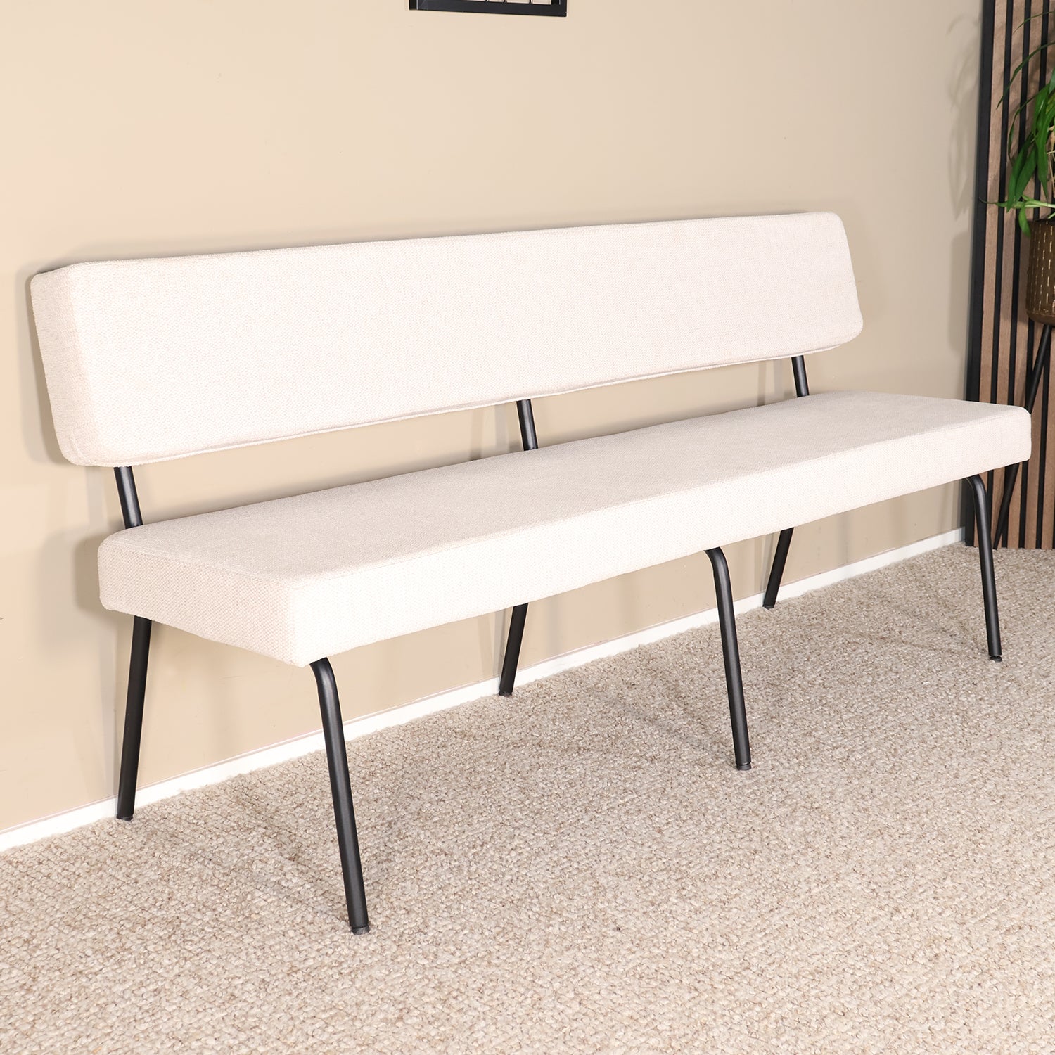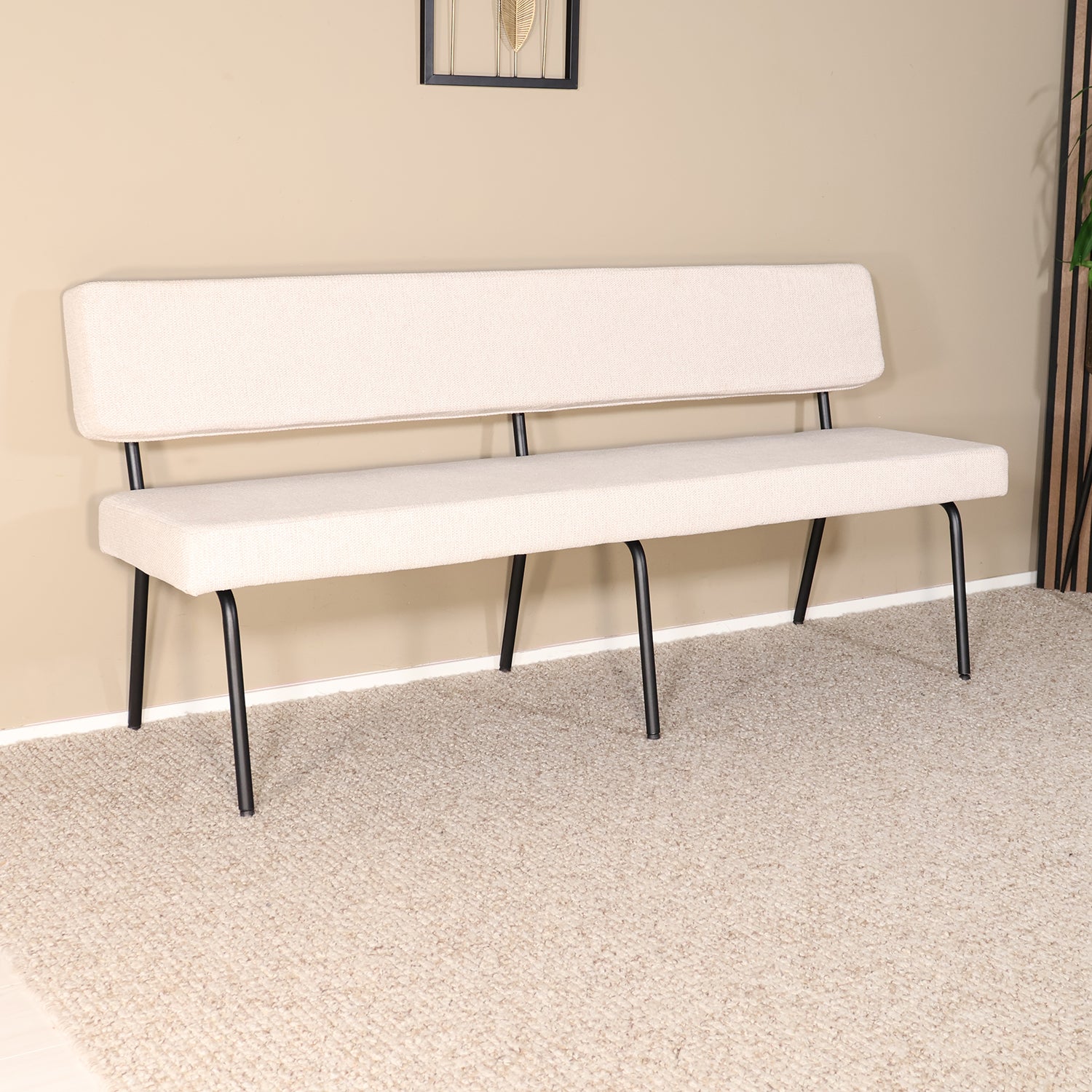 Een stijlvolle eetkamerbank die comfort en eenvoud perfect combineert. De zachte zitting en het metalen onderstel zorgen voor een moderne uitstraling die zowel bij een strak als warm interieur past. Dankzij de ruime zitplaats en comfortabele rugleuning is deze bank ideaal voor lange etentjes, gezellige borrels of als praktische zitbank in de hal of slaapkamer.