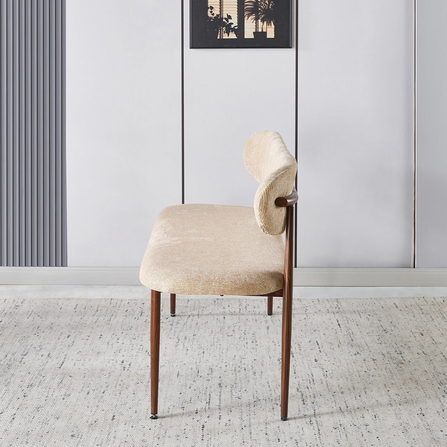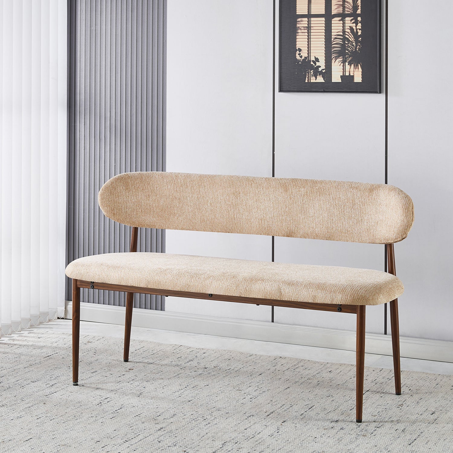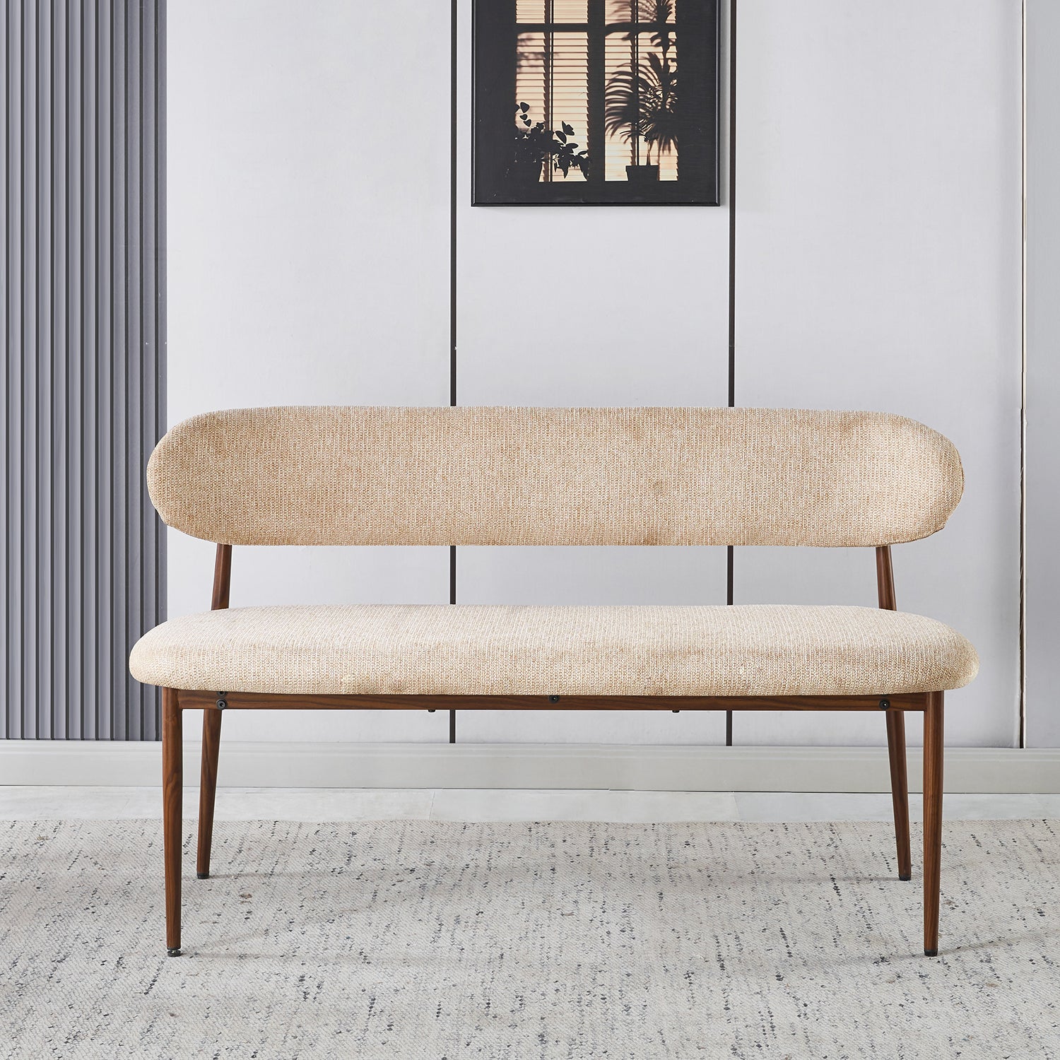 Breng warmte, elegantie en stijl in huis met deze eetkamerbank in verfijnde Japandi-stijl. De combinatie van een zachte stoffen zitting en een natuurlijk houtlook onderstel zorgt voor een harmonieuze balans tussen modern comfort en minimalistisch design. Perfect voor lange diners, rustige ochtenden aan tafel of als stijlvolle accentstoel in je woonkamer.