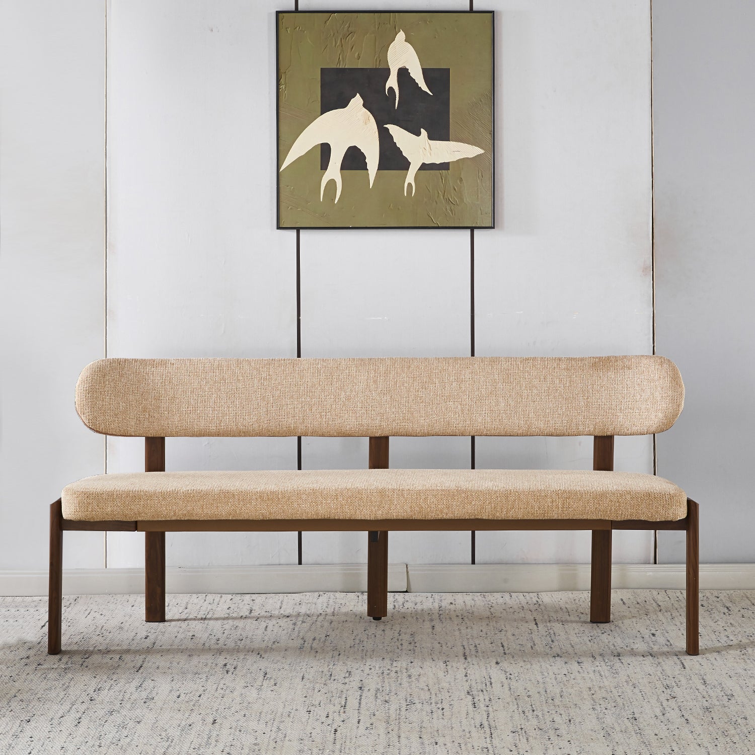Rust, elegantie en stijl in huis dankzij deze eetkamerbank in verfijnde Japanse-stijl. De comfortabele stoffen zitting met een natuurlijk houtlook onderstel zorgt voor een warme balans tussen modern comfort en minimalistisch design. Ideaal voor gezellige diners, kalme ochtenden aan tafel of als stijlvolle toevoeging in je woonkamer.