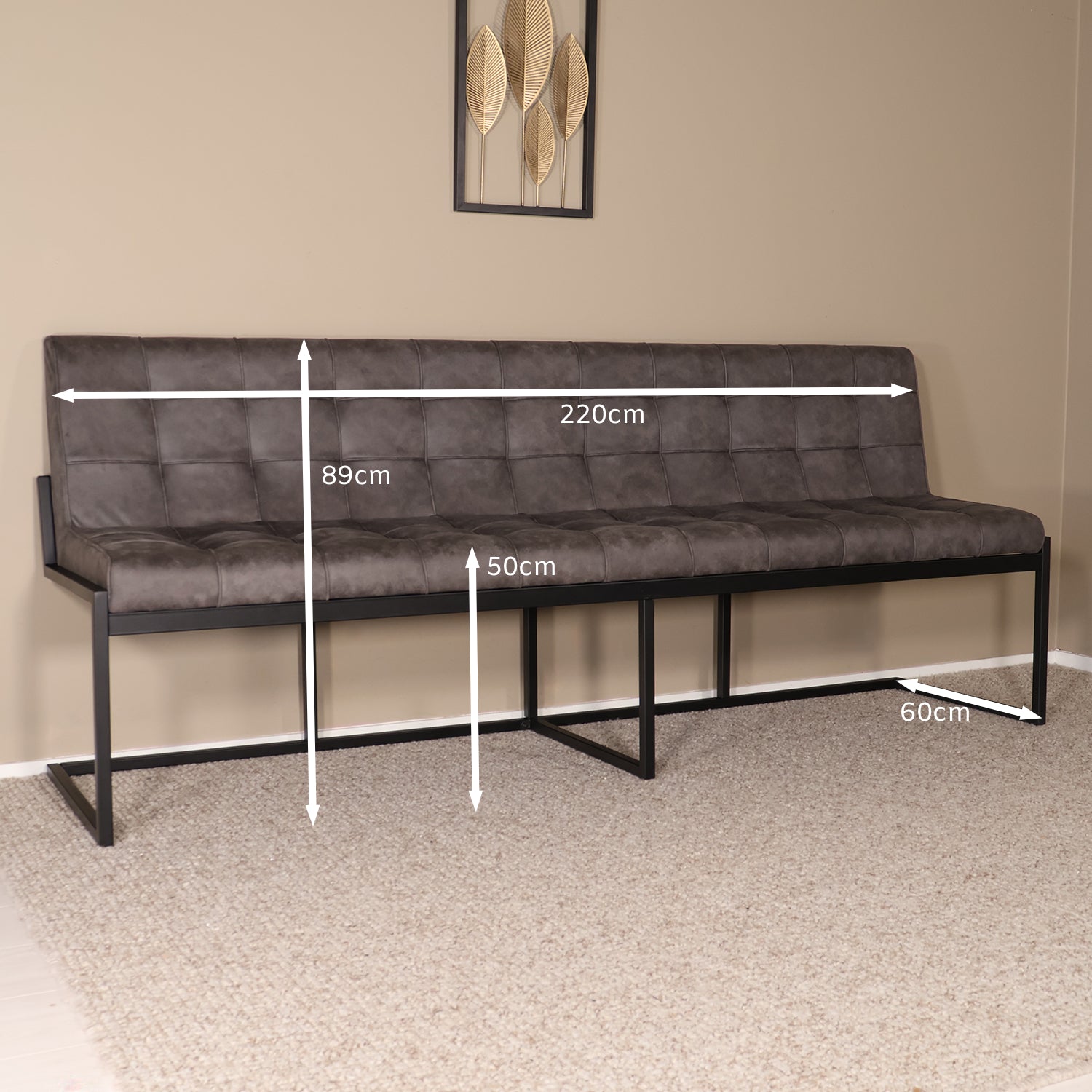 Breng warmte en karakter in je eetruimte met deze royale eetkamerbank. De combinatie van een zachte, duurzame stoffering en een stoer metalen onderstel zorgt voor een perfecte balans tussen comfort en industrieel design. Dankzij de ruime afmetingen biedt deze bank plek voor het hele gezin, ideaal voor lange diners of gezellige momenten aan tafel.