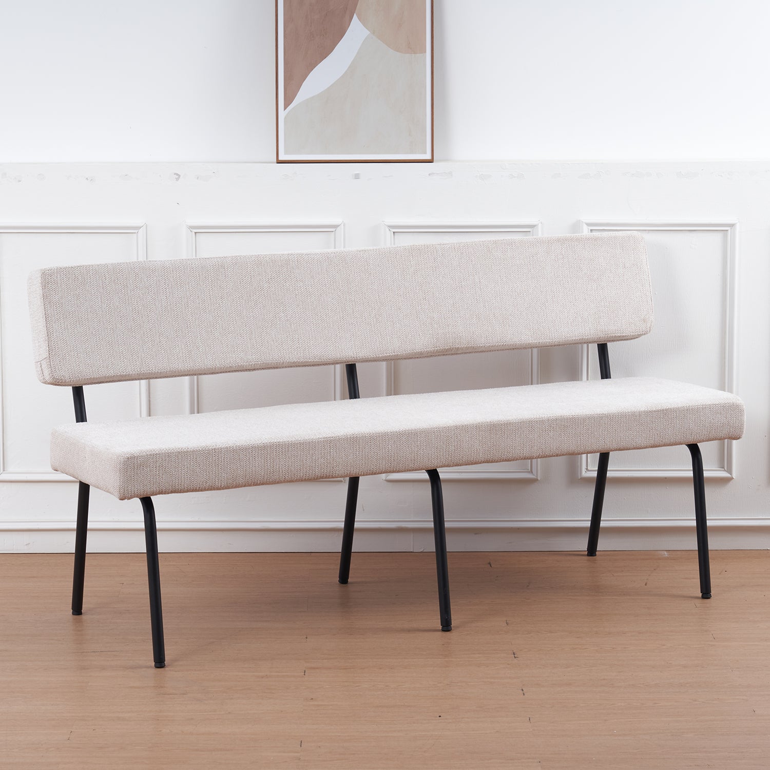 Deze elegante eetkamerbank brengt rust, comfort en stijl samen in één strak design. De zachte stoffering in combinatie met het metalen onderstel zorgt voor een moderne uitstraling die moeiteloos past in zowel een Scandinavisch als industrieel interieur. Ideaal voor aan de eettafel, maar ook perfect te gebruiken als zitbank in de hal, slaapkamer of woonkamer.
