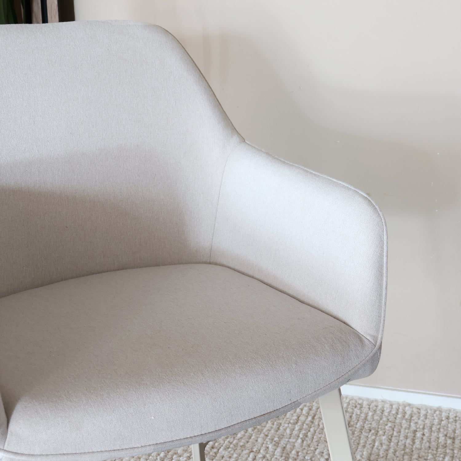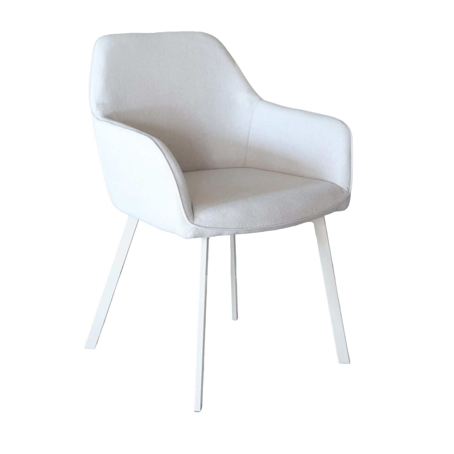 Breng rust en elegantie in je interieur met deze stijlvolle linnen eetkamerstoel. De zachte bekleding, comfortabele armleuningen en het beige metalen frame zorgen samen voor een perfecte mix van comfort en design. Dankzij de neutrale tint past deze eetstoel moeiteloos in zowel moderne als landelijke interieurs.