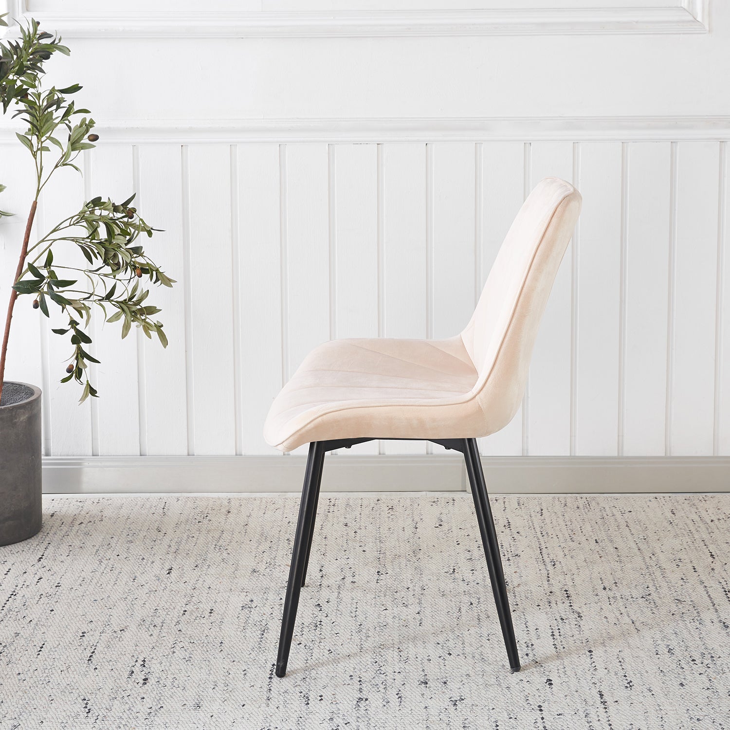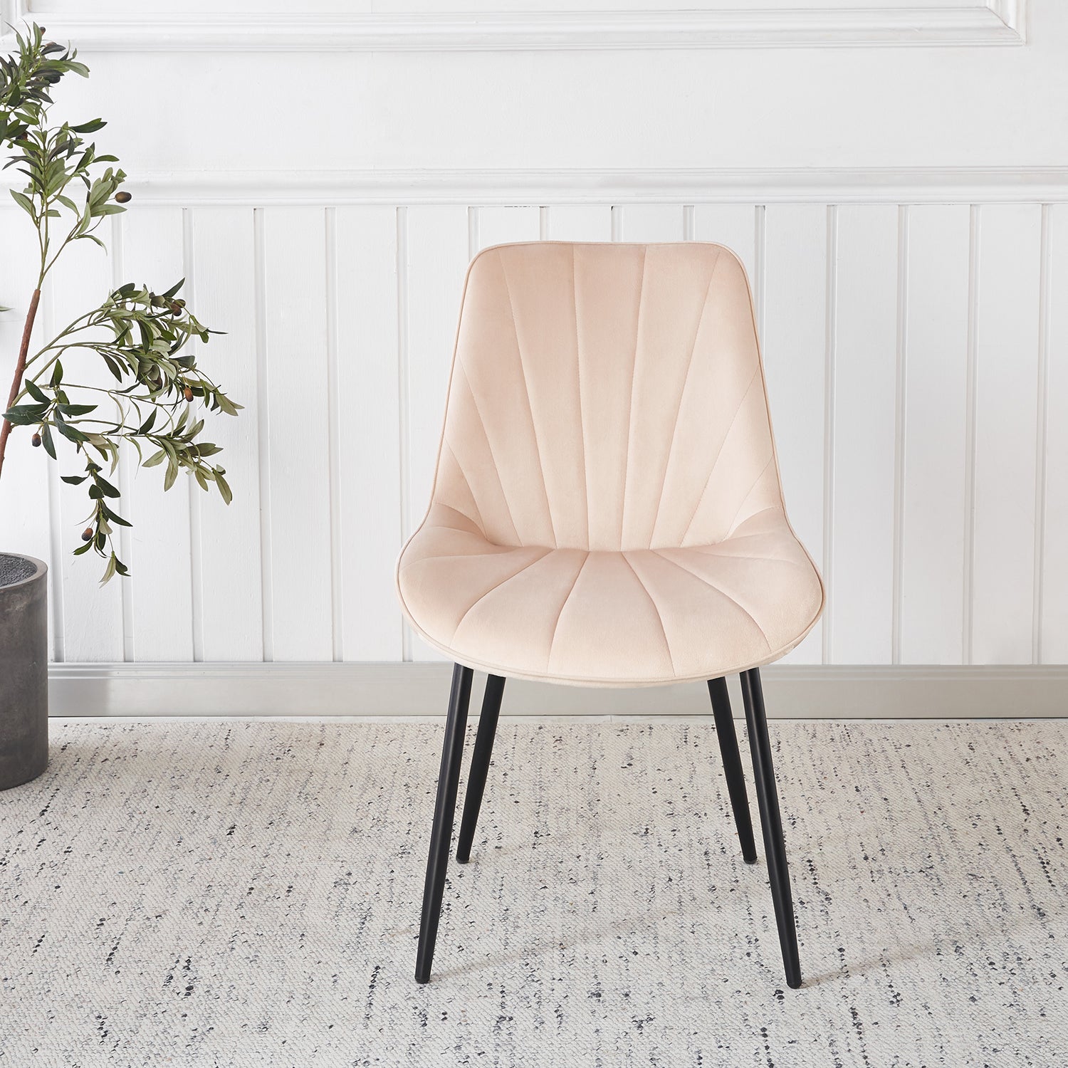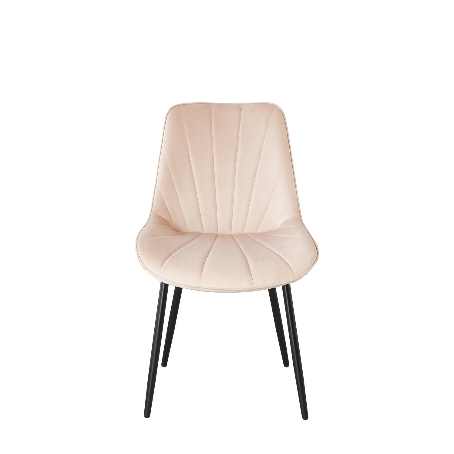 Laat je eethoek stralen met deze prachtige velvet eetkamerstoel. De fluweelzachte bekleding en de metalen poten vormen samen een stijlvolle mix van elegantie en robuust design. Dankzij de stijlvolle vormen en zachte zitting is deze stoel perfect voor gezellige diners of lange avonden aan tafel.