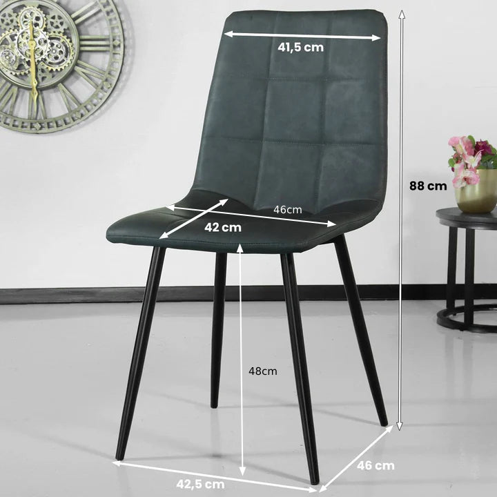 Deze eetkamerstoel Catoo heeft een zitting bekleed met een PU nep leder. Daarbij is het frame gemaakt van zwart gepoedercoat metaal. Houd er rekening mee dat de bekleding van de stoel niet afneembaar is, je kunt de stoel onderhouden met een leather look care kit!