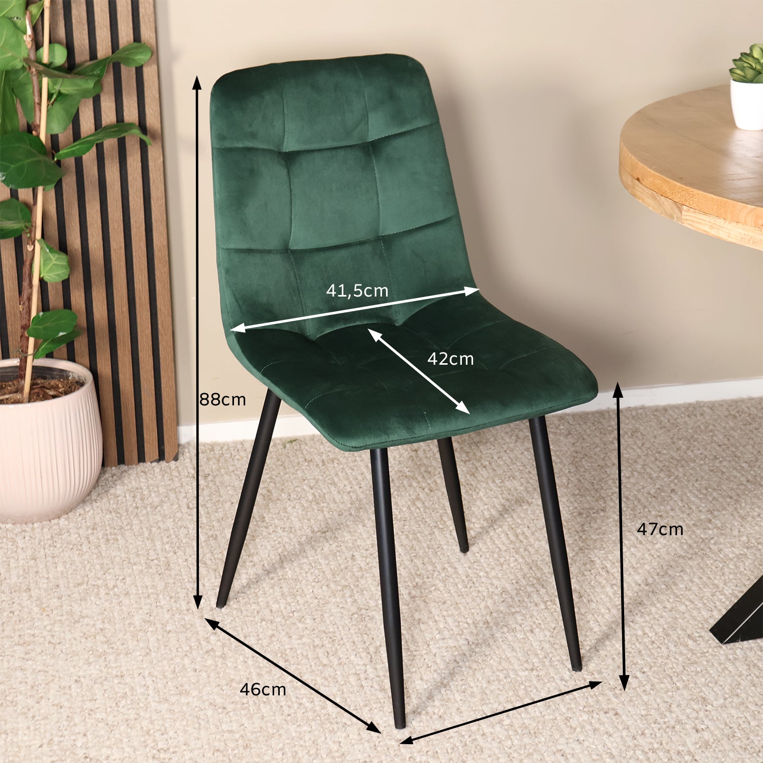 - Eetstoel van B 46 × D 55 × H 88 cm met een zithoogte van 48 cm