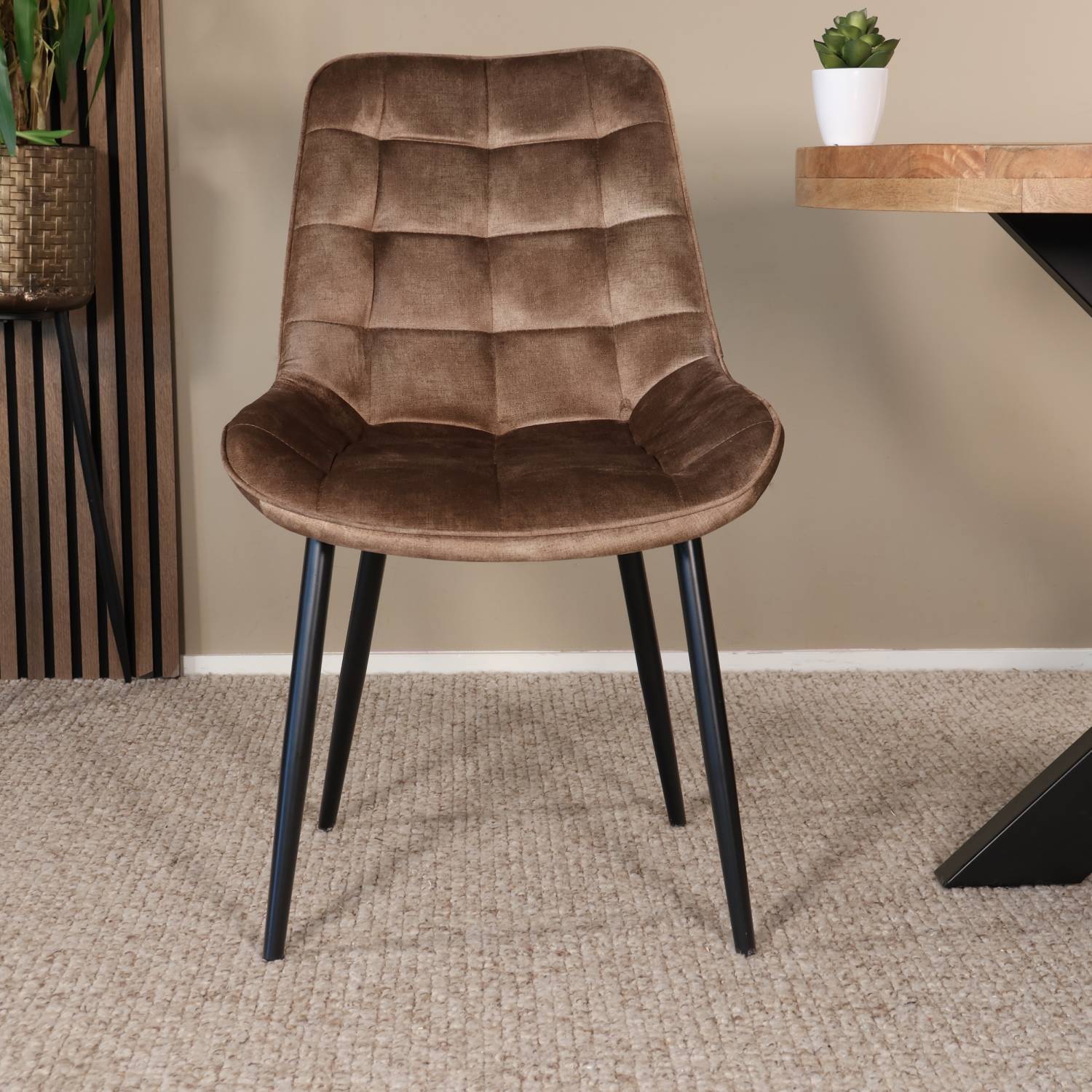 Creëer een luxueuze sfeer aan tafel met deze elegante velvet eetkamerstoel. De zachte fluweelachtige stof voelt heerlijk comfortabel aan en geeft de stoel een verfijnde uitstraling, terwijl het metalen onderstel zorgt voor een modern contrast. Het subtiele ruitpatroon op de rugleuning maakt deze stoel tot een stijlvolle blikvanger in iedere eetkamer of woonkamer.