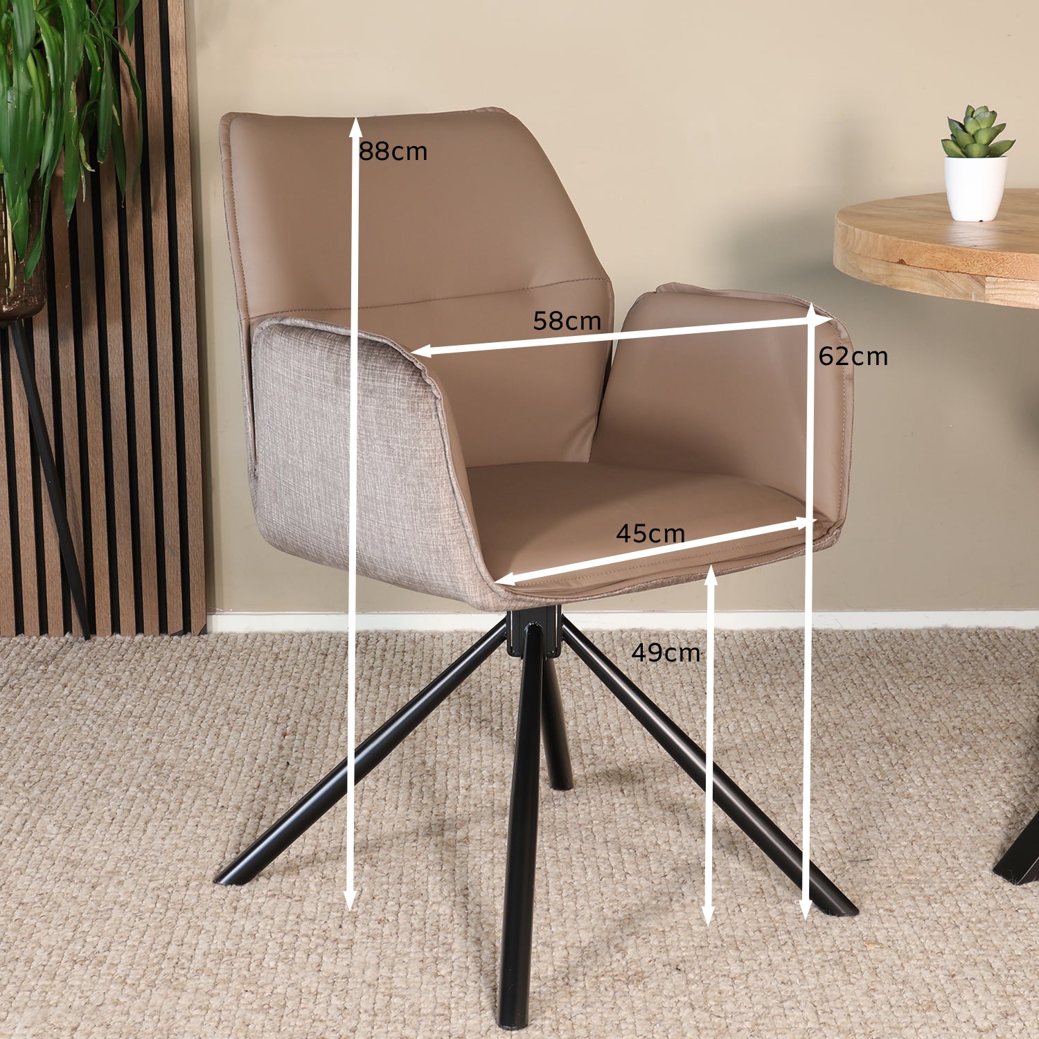 - Eetkamerstoel van B 61 × D 58 × H 88 cm met een zithoogte van 49 cm