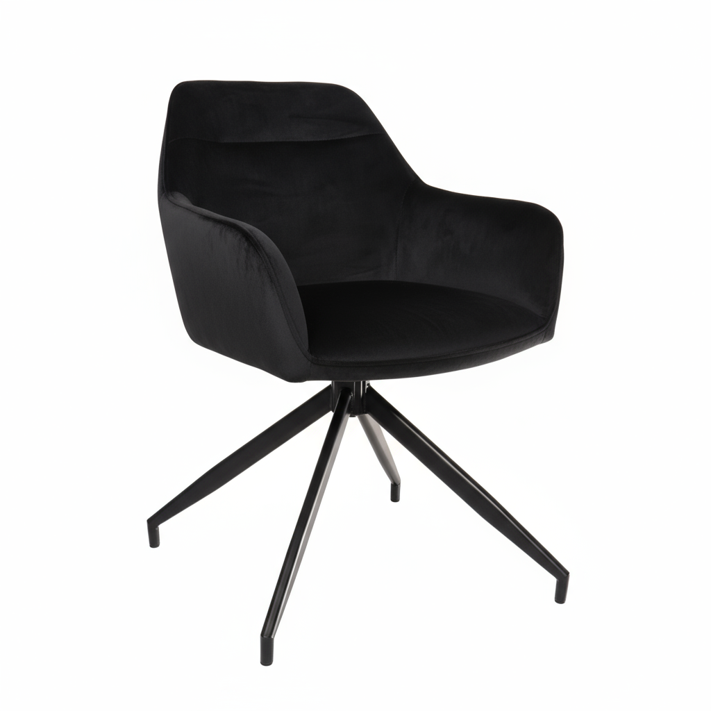 Combineer luxe en comfort met deze elegante draaibare eetstoel. De zachte velvet zitting en het stevige metalen frame zorgen samen voor een stijlvolle uitstraling die perfect past binnen moderne en industriële interieurs. Dankzij het draaimechanisme geniet je van extra gebruiksgemak zonder concessies te doen aan design.