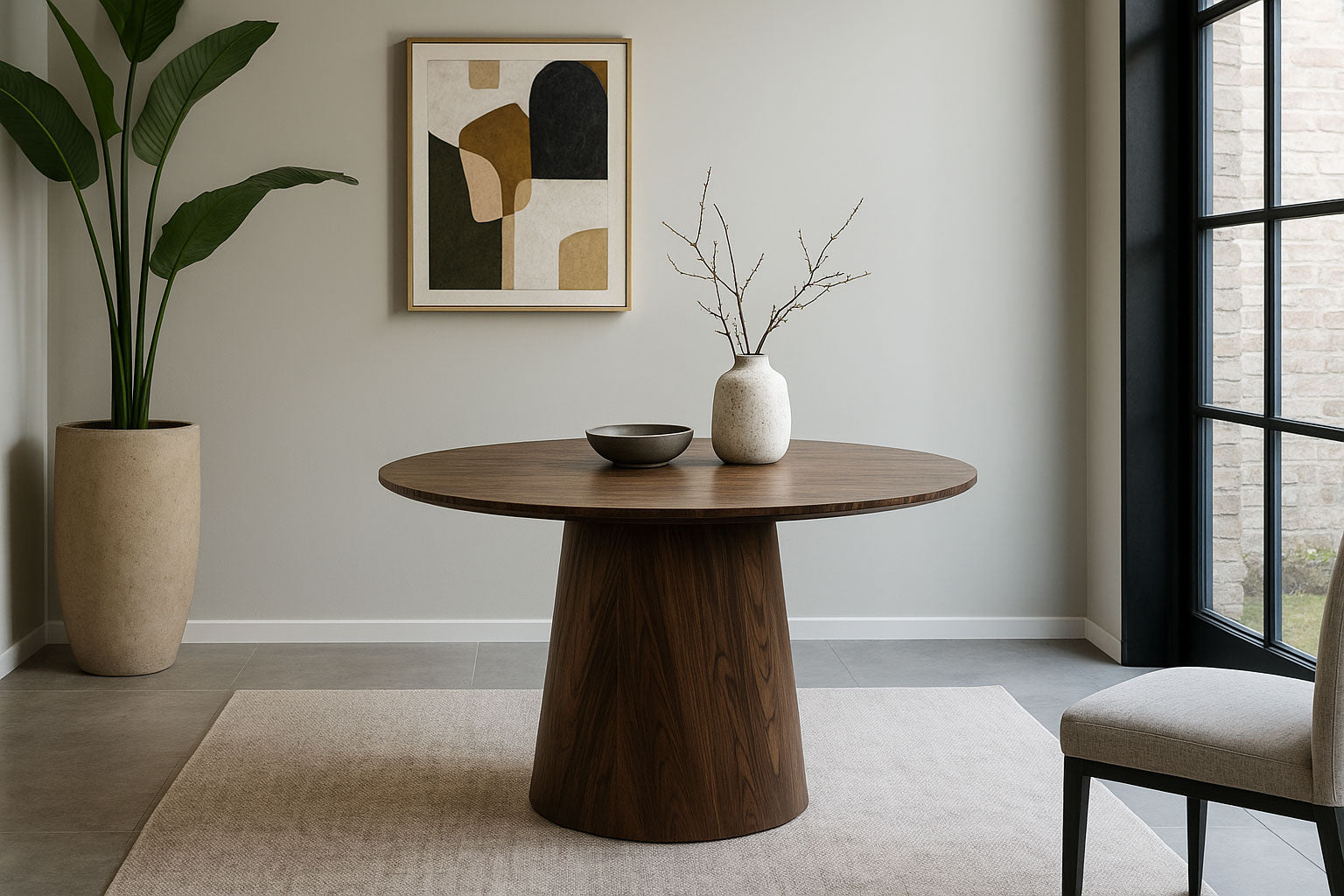 Eettafel Japandi Amber rond 120cm walnoot MDF