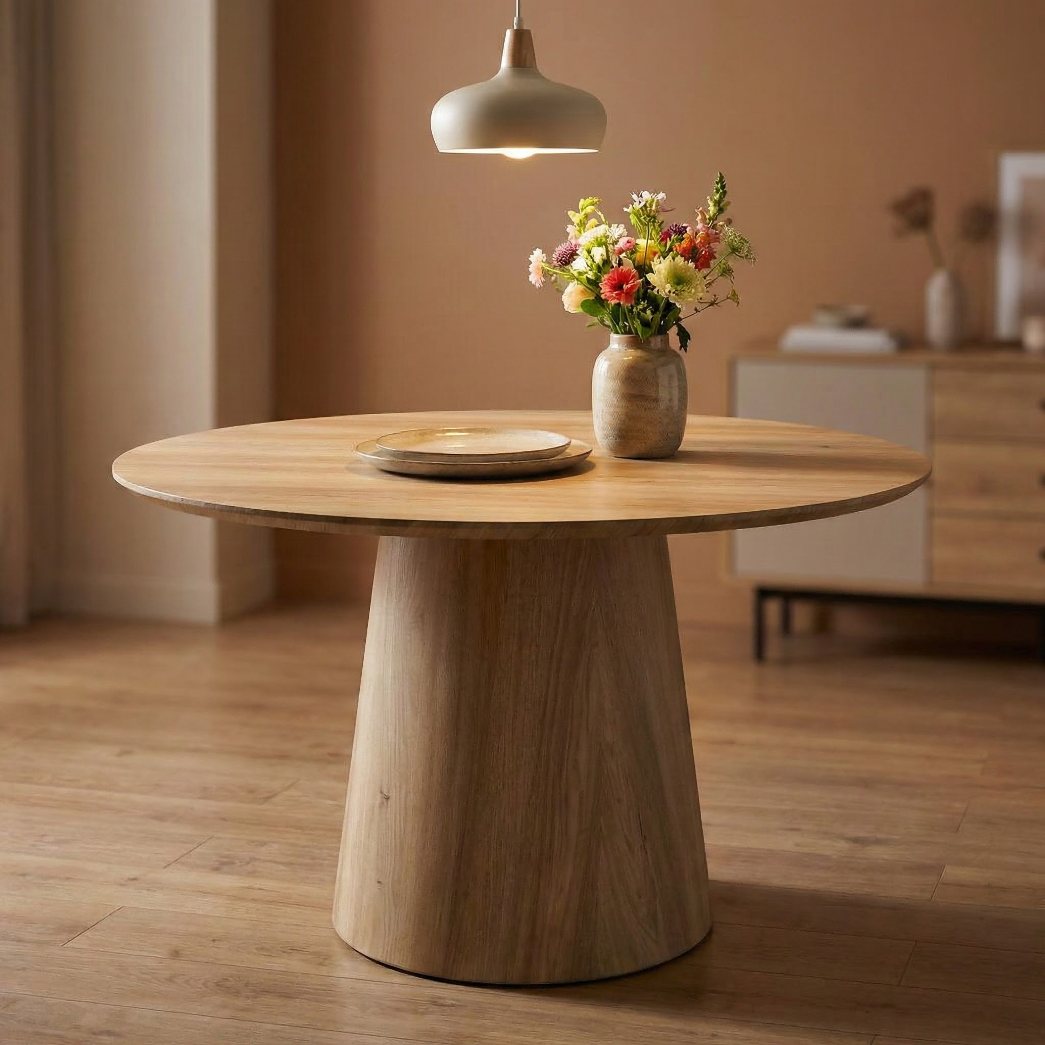 Eettafel Japandi Amber rond 120cm lichtbruin MDF
