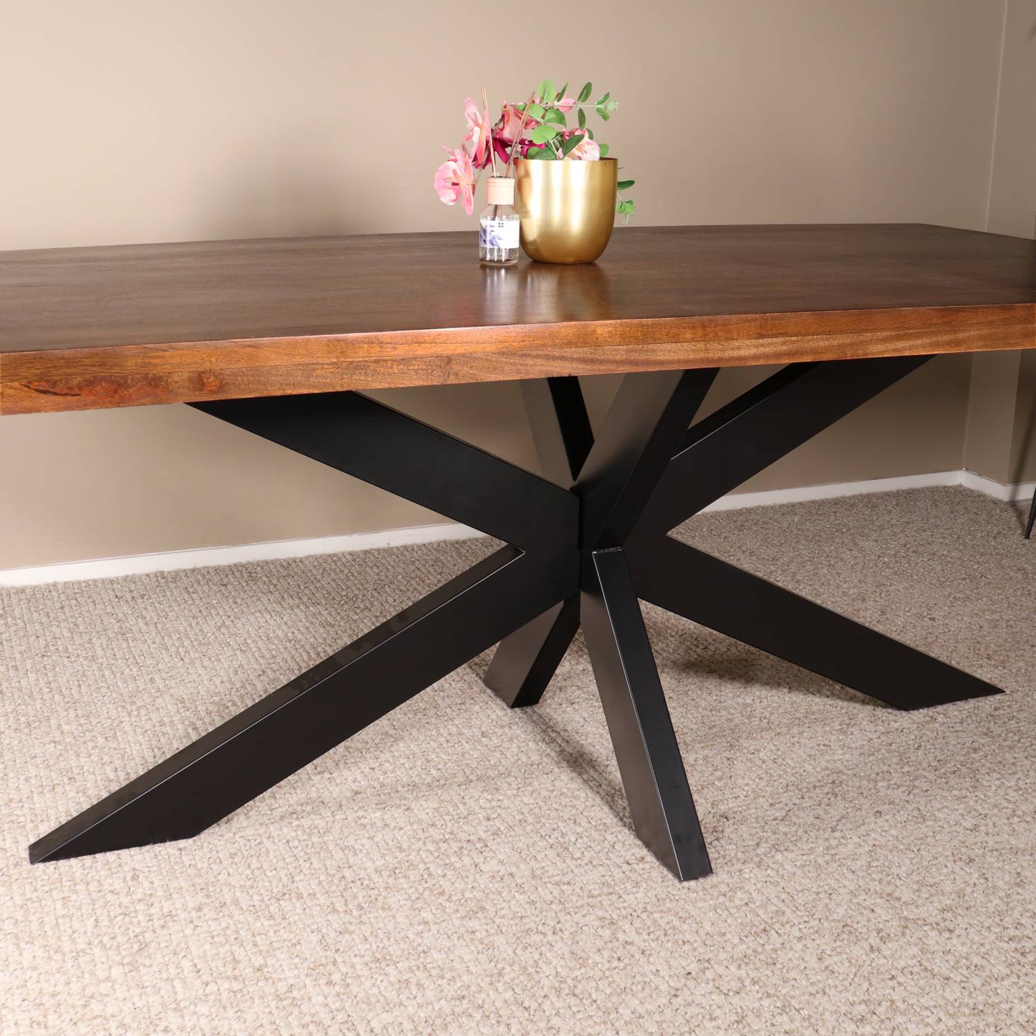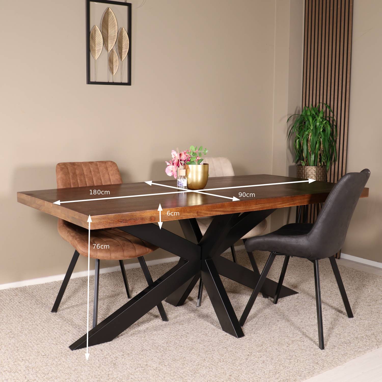 Deze industriële eettafel combineert de warme uitstraling van mangohout met de stoere look van metaal. Het tijdloze ontwerp past moeiteloos in verschillende interieurstijlen — van modern tot landelijk. Dankzij de ruime afmetingen biedt de tafel voldoende ruimte om gezellig met familie of vrienden te tafelen, te borrelen of uitgebreid te dineren.