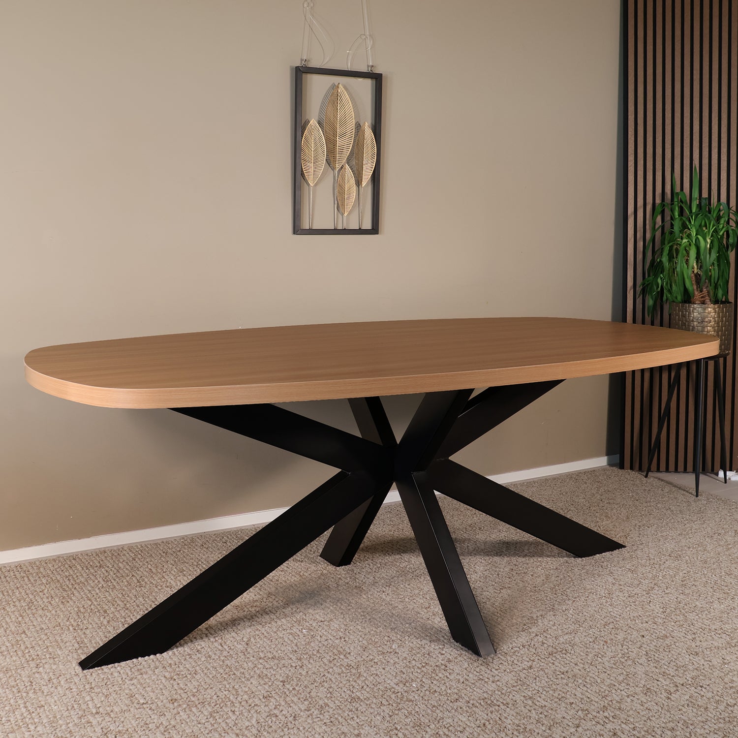 Een echte blikvanger in jouw interieur — deze royale eettafel combineert een modern design met robuuste details. Het Deens ovale blad zorgt voor een elegante, zachte vorm die de ruimte groter laat lijken, terwijl het stoere metalen onderstel juist voor balans en stevigheid zorgt. Met haar ruime formaat is deze tafel ideaal voor grote gezinnen of gezellige avonden met vrienden. Een perfecte mix van comfort, stijl en gebruiksgemak!