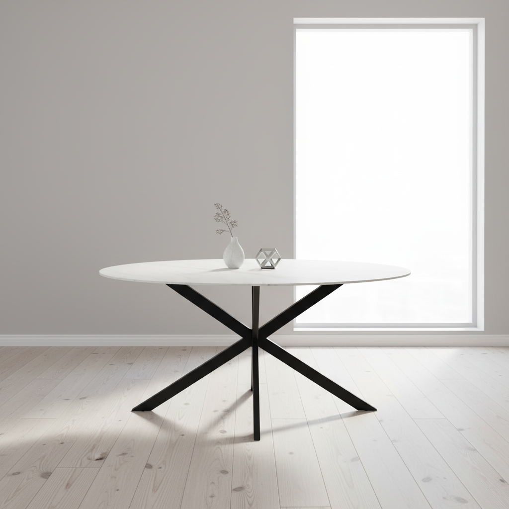 Met zijn elegante marmerlook en verfijnde afwerking is deze ovale eettafel een echte blikvanger in elke moderne eetkamer. Het duurzame sintered stone blad combineert de luxe uitstraling van marmer met de kracht van keramiek, terwijl het metalen onderstel zorgt voor een stoer industrieel accent. Perfect voor gezellige diners, stijlvolle borrels of lange gesprekken aan tafel.