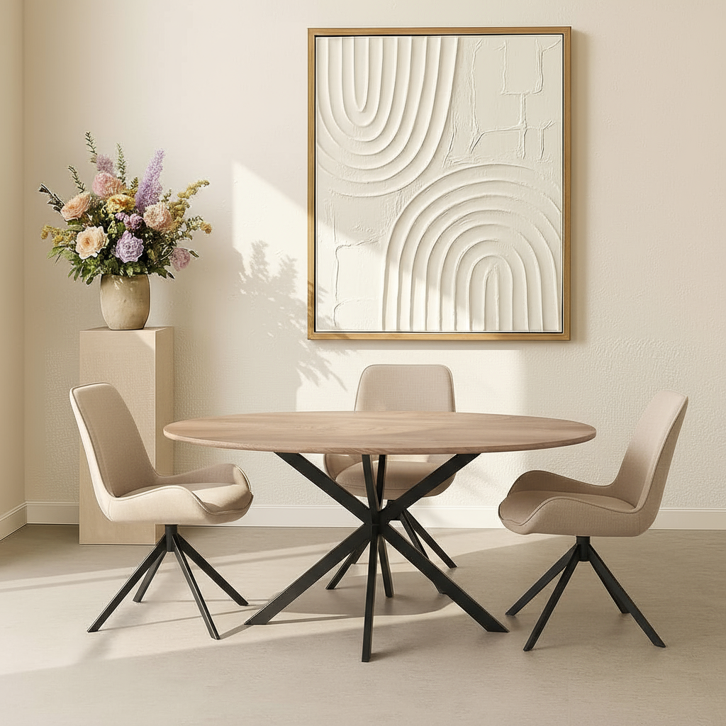Een MDF eettafel is stijlvol, lichtgewicht en eenvoudig te verplaatsen. Het oppervlak is onderhoudsvriendelijk en blijft het mooist met een zachte, vochtige doek. Ideaal voor dagelijks gebruik en perfect passend in diverse interieurstijlen!