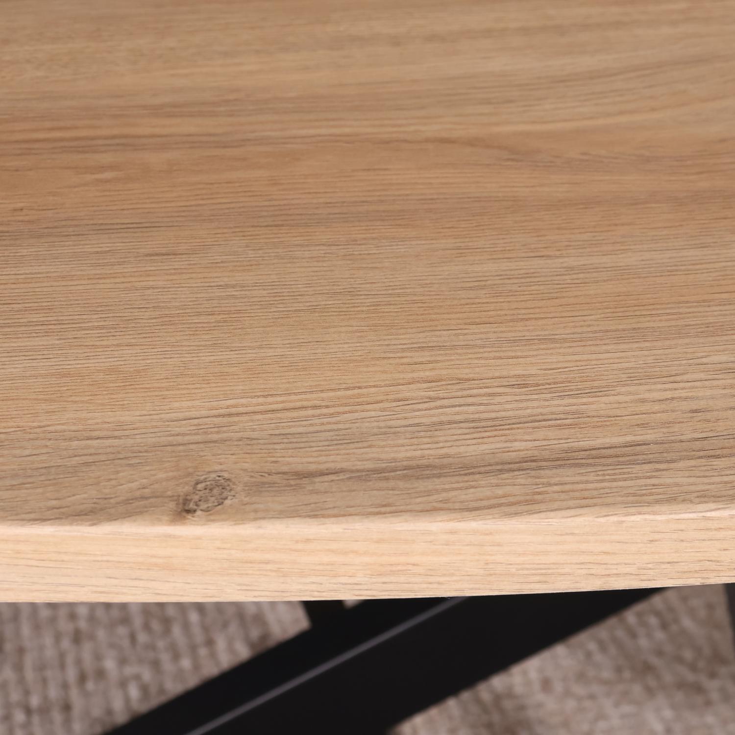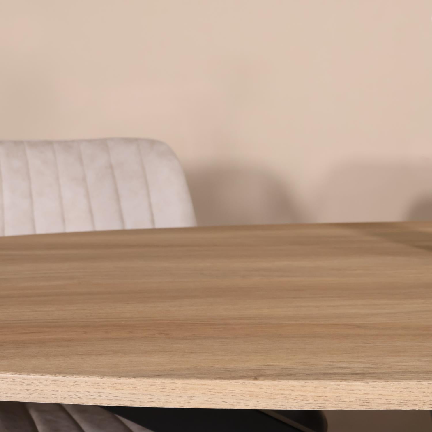 Deze ovale eettafel vormt het perfecte middelpunt van je eetruimte. Het warme houtpatroon in combinatie met het stoere metalen onderstel creëert een harmonie tussen natuurlijke elegantie en industrieel karakter. Een stijlvolle tafel die uitnodigt tot lange avonden tafelen en gezellig samenzijn.