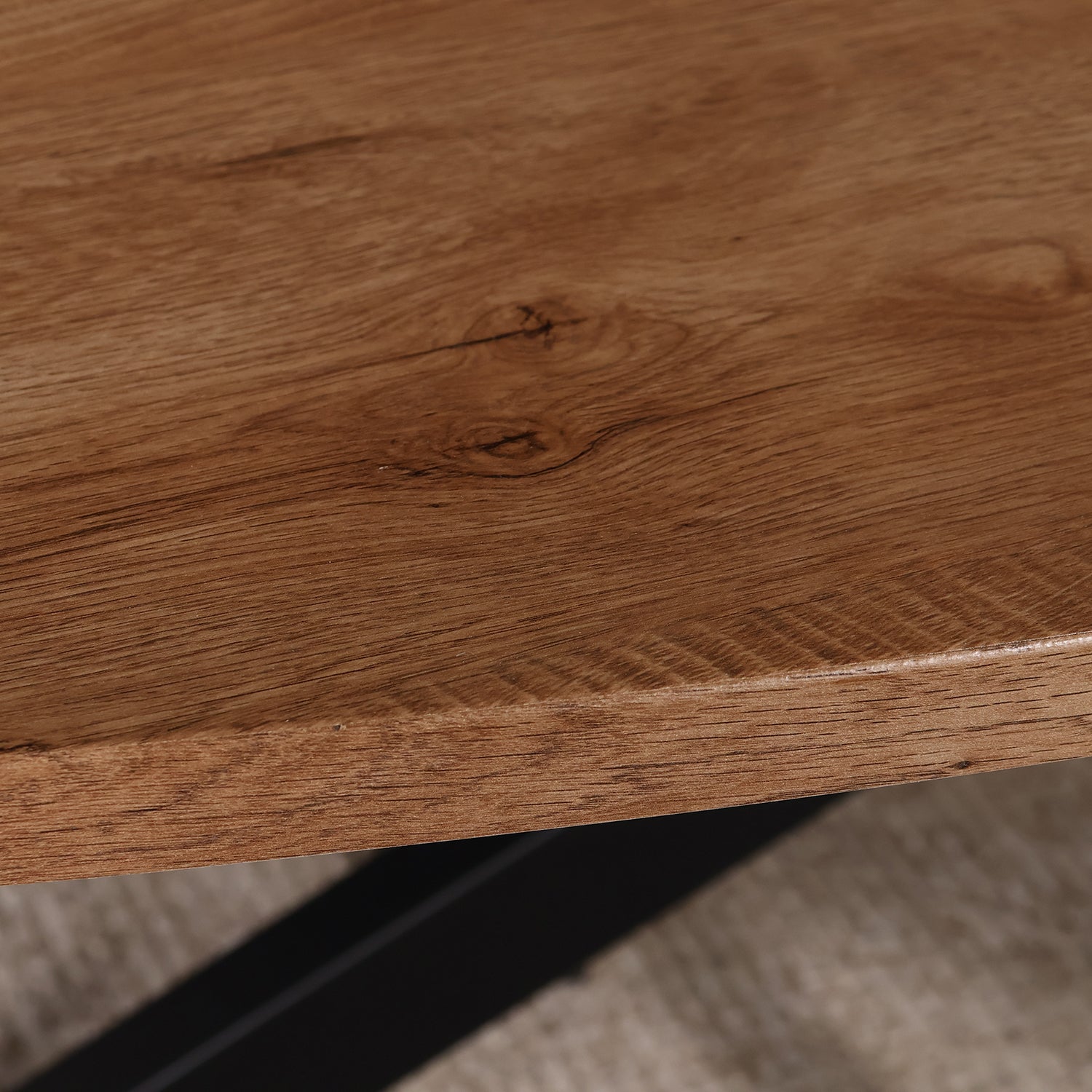 Deze ovale eettafel vormt het perfecte middelpunt van je eetruimte. Het warme houtpatroon in combinatie met het stoere metalen onderstel creëert een harmonie tussen natuurlijke elegantie en industrieel karakter. Een stijlvolle tafel die uitnodigt tot lange avonden tafelen en gezellig samenzijn.