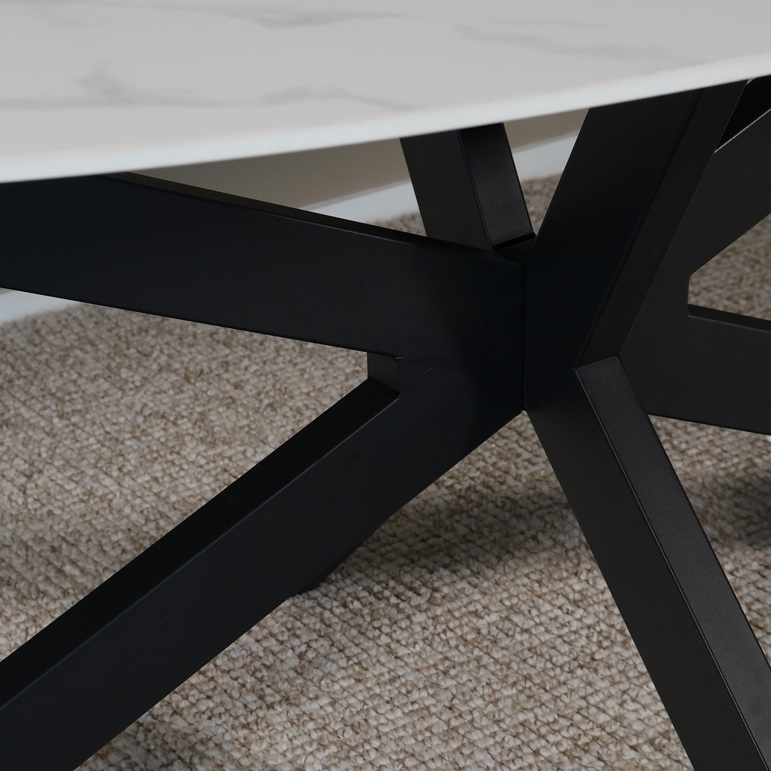 Met zijn royale formaat en luxueuze marmerlook is deze ovale eettafel een stijlvolle eyecatcher in elk interieur. Het sintered stone blad combineert de verfijnde uitstraling van natuursteen met de kracht en duurzaamheid van modern materiaal. Het stevige metalen onderstel geeft de tafel een robuuste industriële touch – perfect voor een sfeervolle eetkamer of moderne woonkeuken.