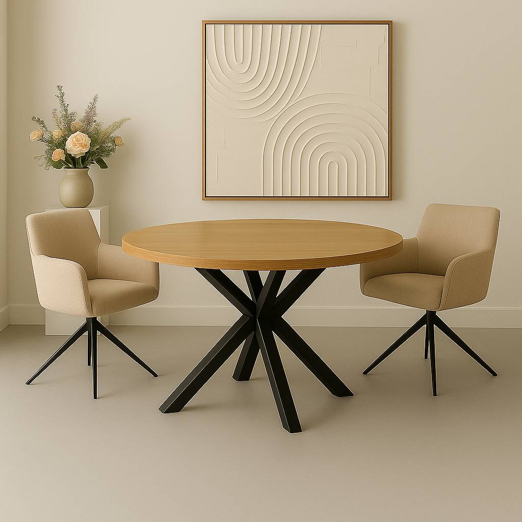 Eettafel Sanne rond 120cm lichtbruin melamine