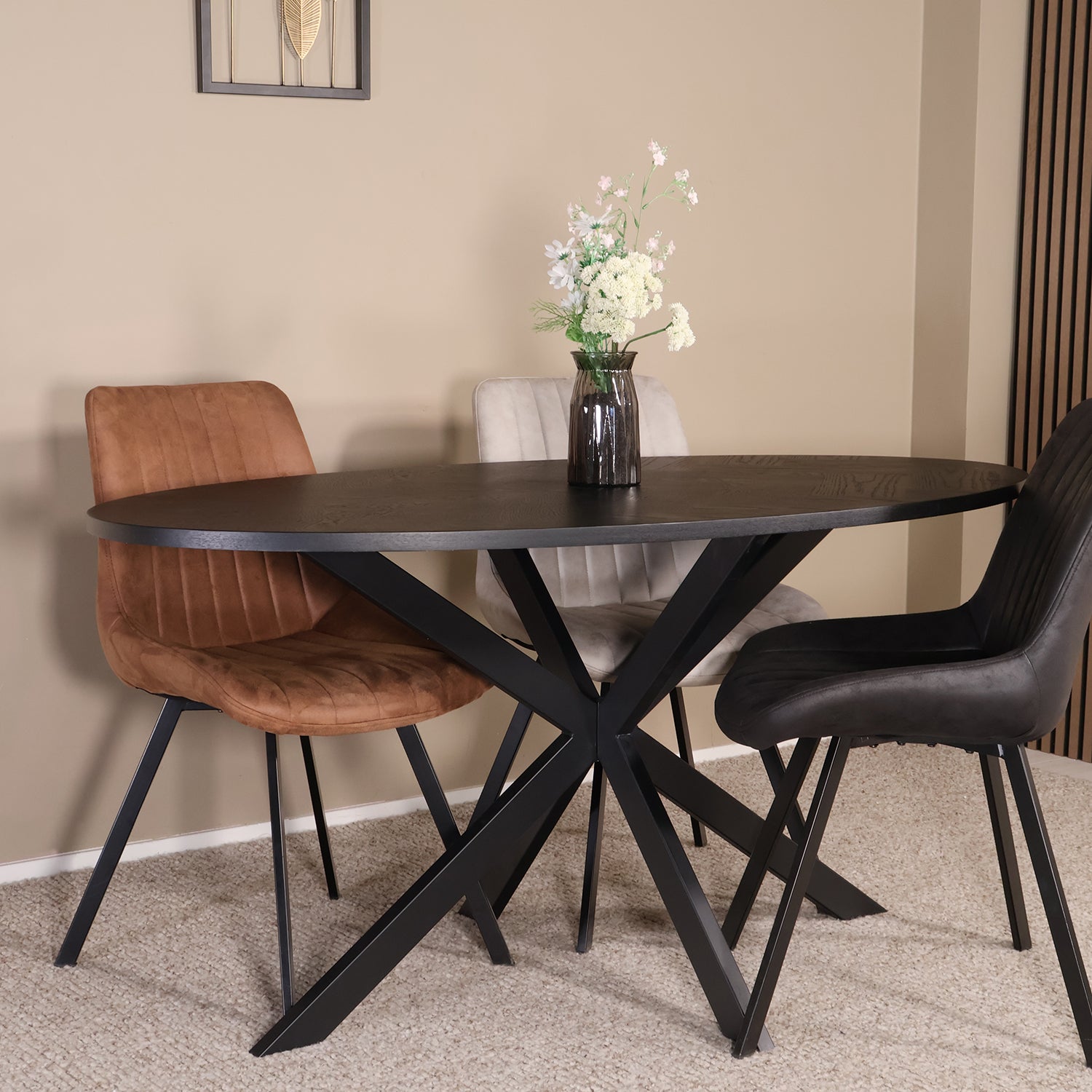 Eettafel visgraat Obie ovaal 160cm zwart MDF