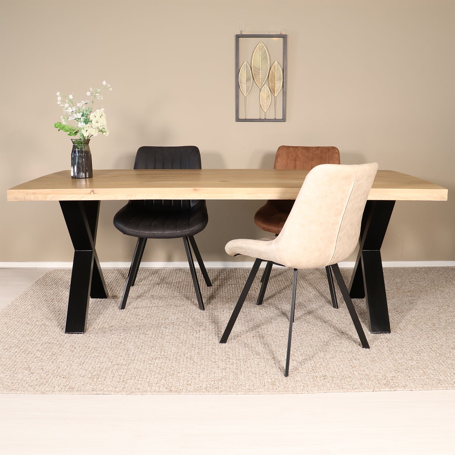 Deze eetkamertafel Xavier met X-poot heeft een tafelblad gemaakt van mangohout, geen standaard MDF tafelblad voor jou maar écht kwaliteit! Daarbij is het frame gemaakt van zwart gepoedercoat metaal voor een stoer en robuust geheel.