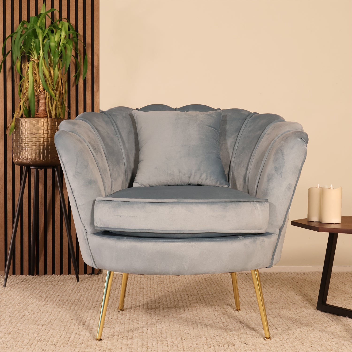 Deze elegante fauteuil met zachte velvet bekleding straalt pure luxe en comfort uit. De zachte stof in combinatie met de goudkleurige metalen poten zorgt voor een stijlvolle, warme uitstraling die moeiteloos in elk interieur past. Perfect om heerlijk in te ontspannen met een boek of een kop thee.