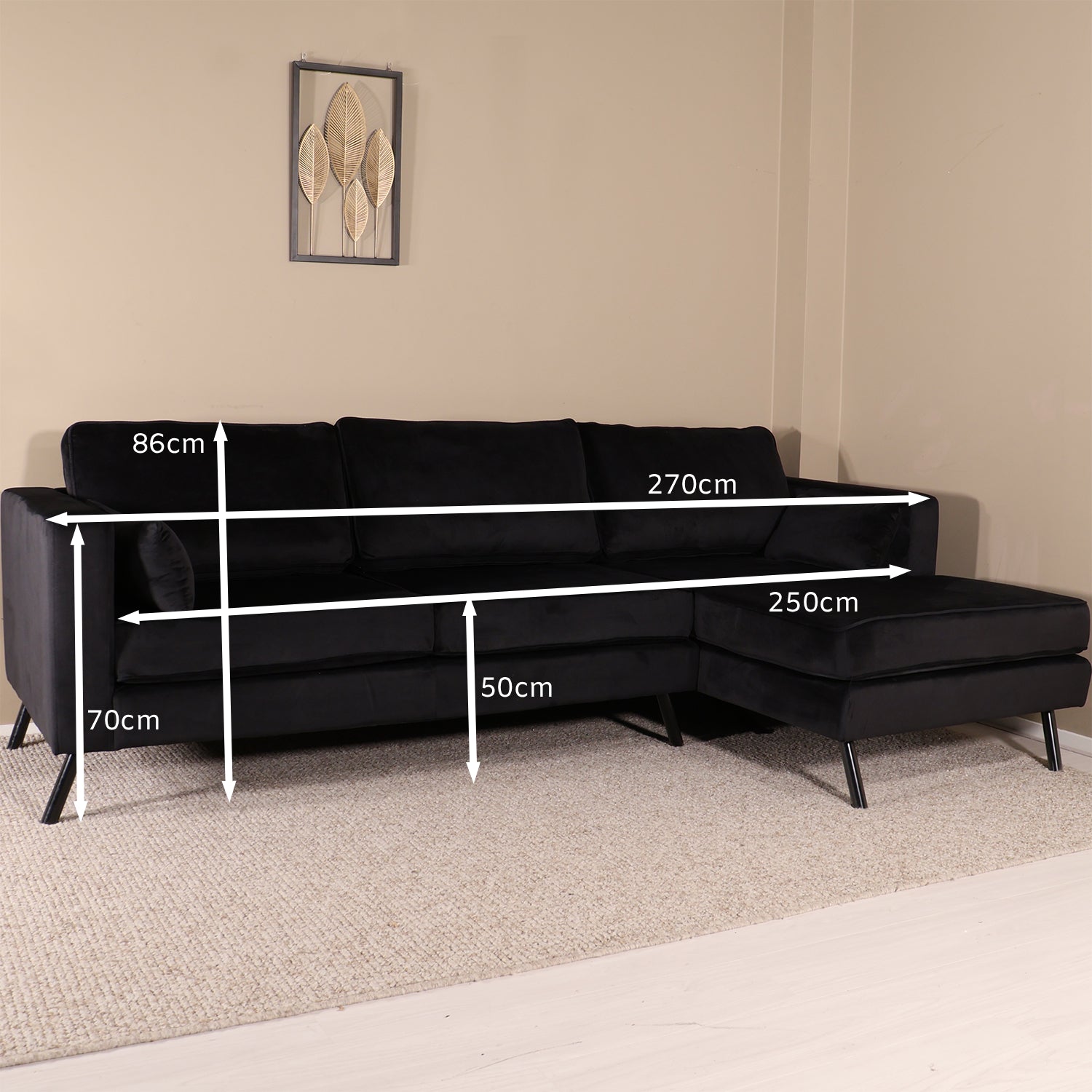 Hoekbank Hilde 270cm velvet zwart rechts