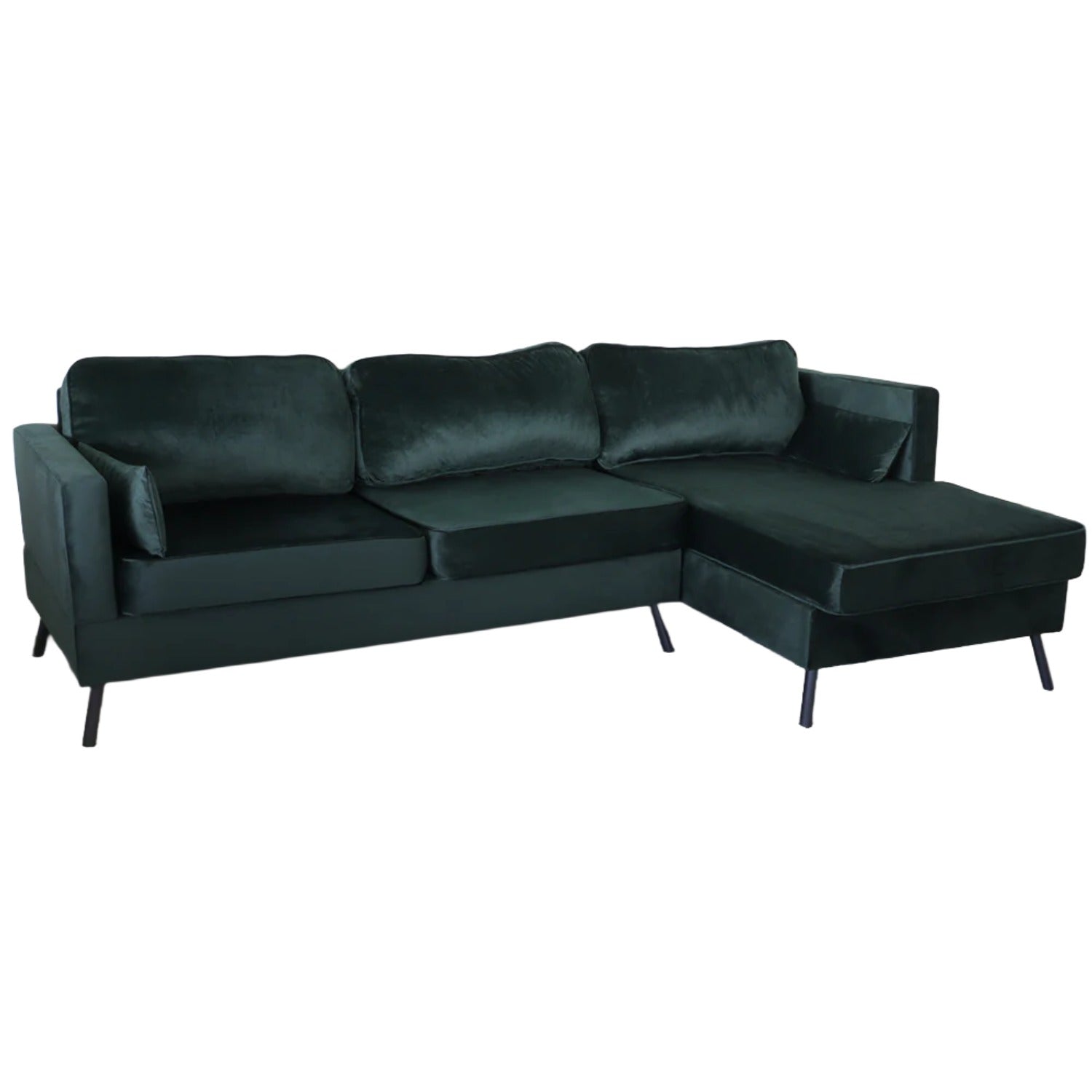 Hoekbank Lizza donkergroen velvet 270cm links en rechts
