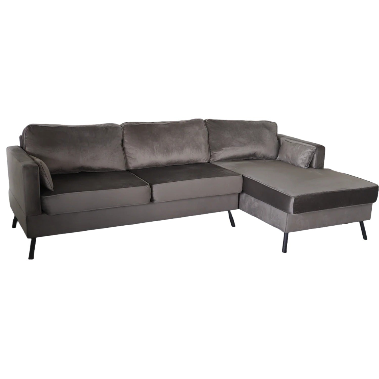 Hoekbank Lizza grijs velvet 270cm links en rechts