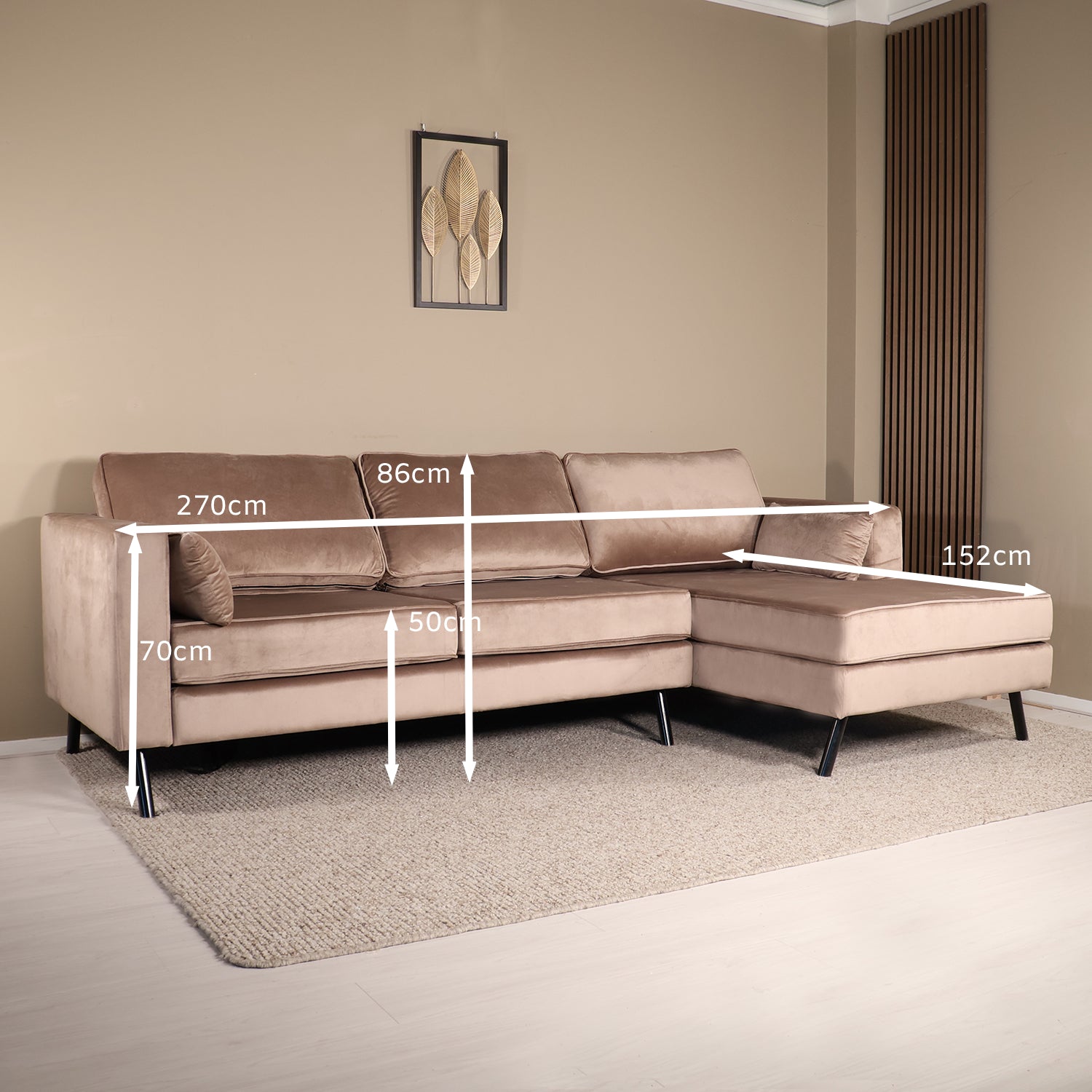 - Hoekbank van B 270 × D 152 × H 86 cm – zithoogte 50 cm