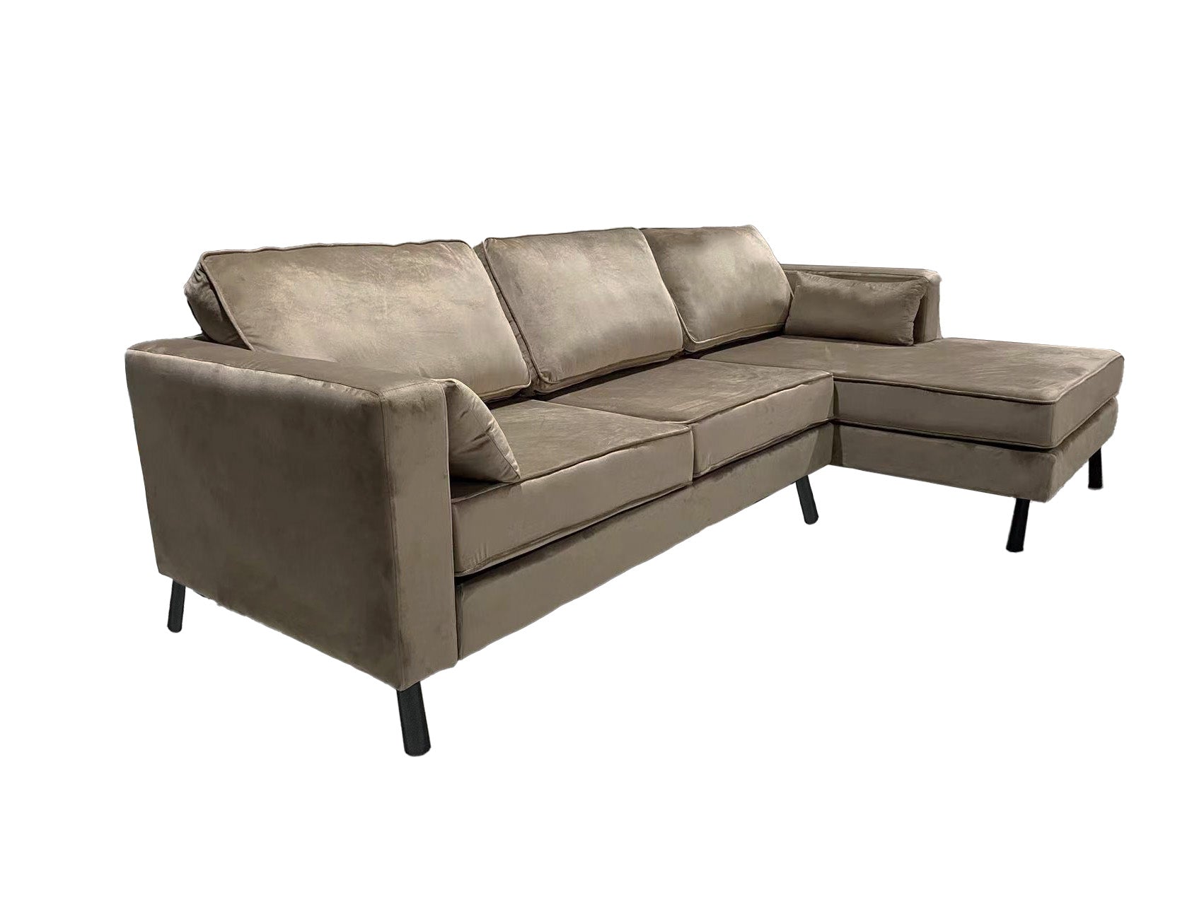 Deze hoekbank is gemaakt van 28D koud schuim. Daarbij is het frame gemaakt van zwart gepoedercoat metaal. Houdt er rekening mee dat de bekleding van de hoekbank niet afneembaar is, de zitting is te reinigen met een vochtige doek en kan geïmpregneerd worden met een textiel protector spray!