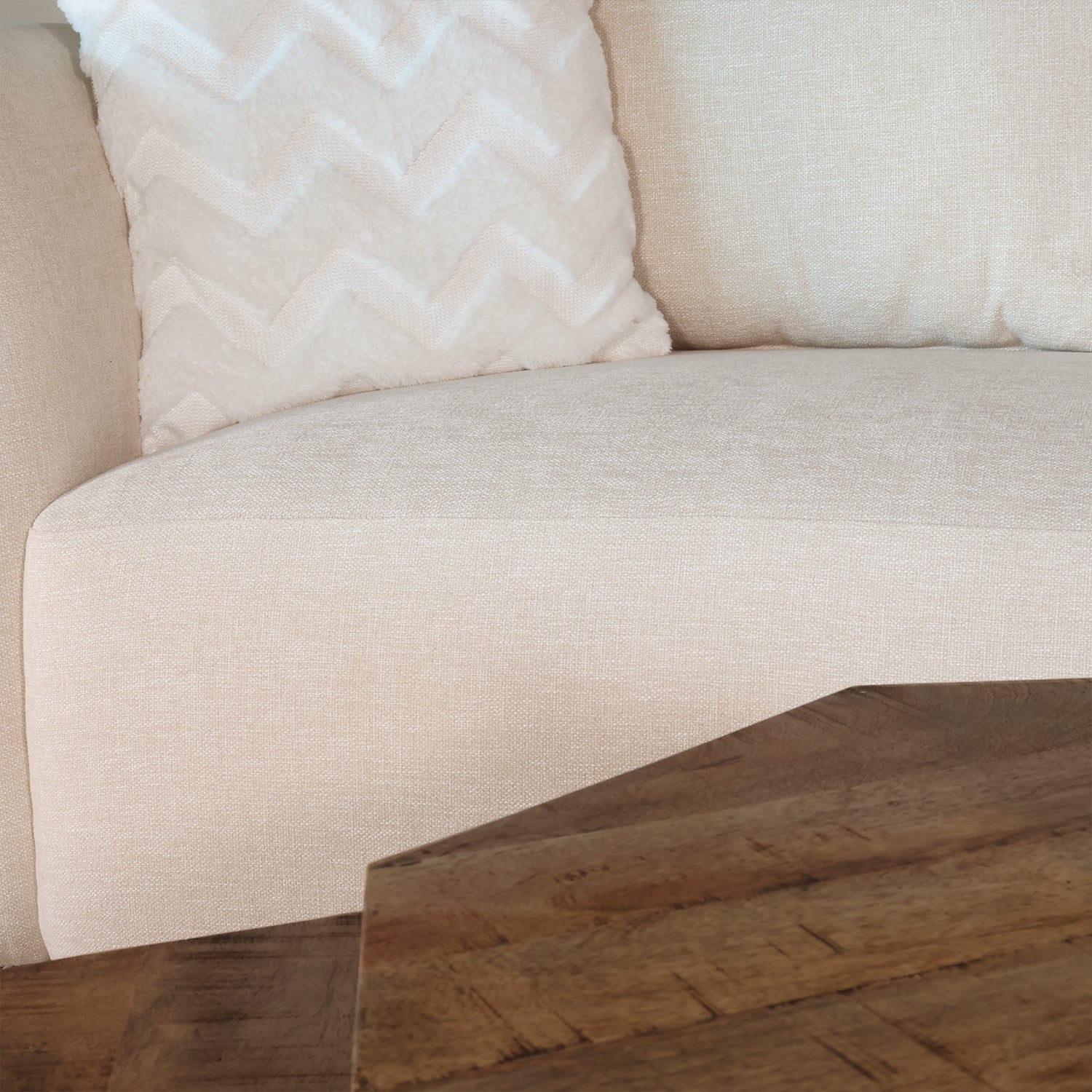 Deze zitbank is voor 95% gemaakt van 30D koudschuim en voor 5% van chenille. Chenille is officieel geen stof, maar een verzameling van garen die tot een prachtige stof worden verwerkt. Daardoor heeft chenille als kenmerk dat het een mooie glans heeft maar ook dat het schuur- en slijtvast is. Dat betekent dat deze heerlijk zachte fluweelachtige stoel jarenlang plezier zal geven! Houdt er rekening mee dat de bekleding van de bank niet afneembaar is, de zitting is te reinigen met een vochtige doek en kan geïmpregneerd worden met een textiel protector spray!