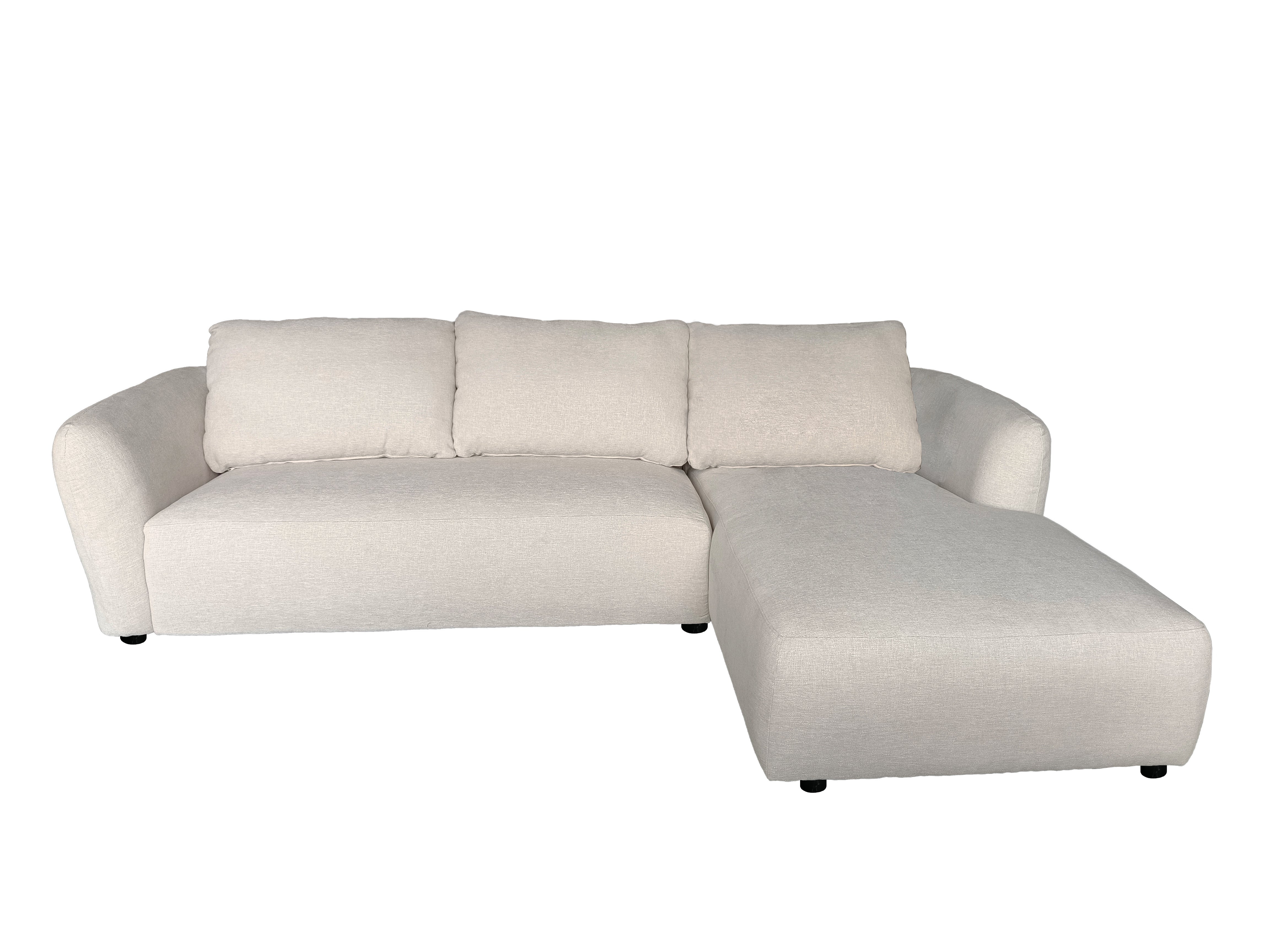 De hoek van de bank zit aan de rechterkant als je voor de bank staat.